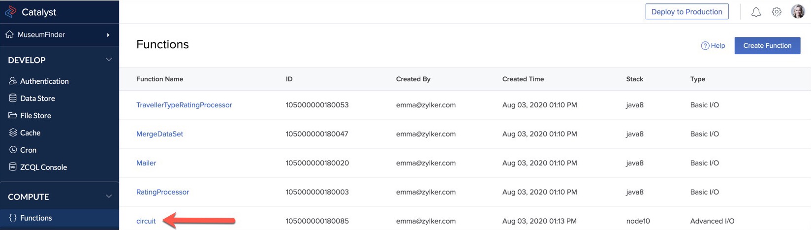 - Now, navigate to Functions and click the circuit function.