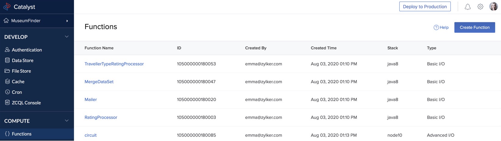 Note: The console editor is currently not available for Java functions in the Catalyst console. Therefore, you will not be able to view the code of the Java functions.