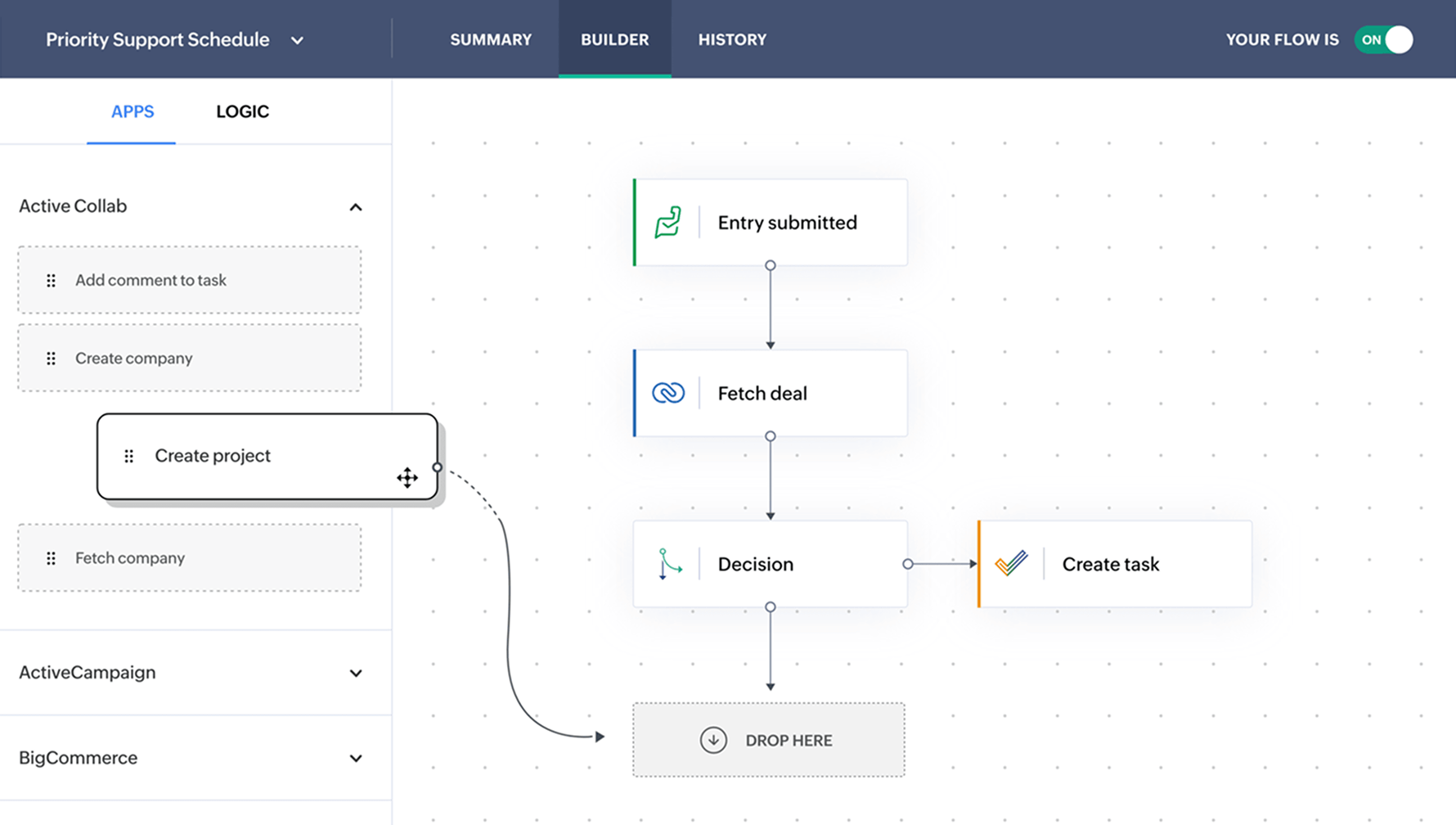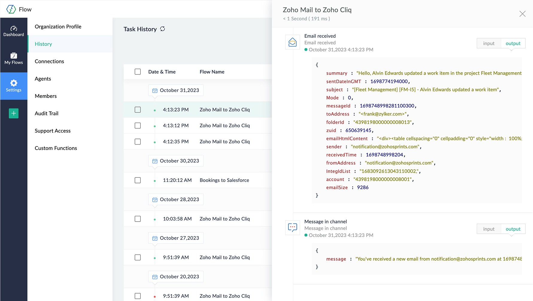 Zoho Flow is an integration platform that helps you connect applications to automate business workflows.
