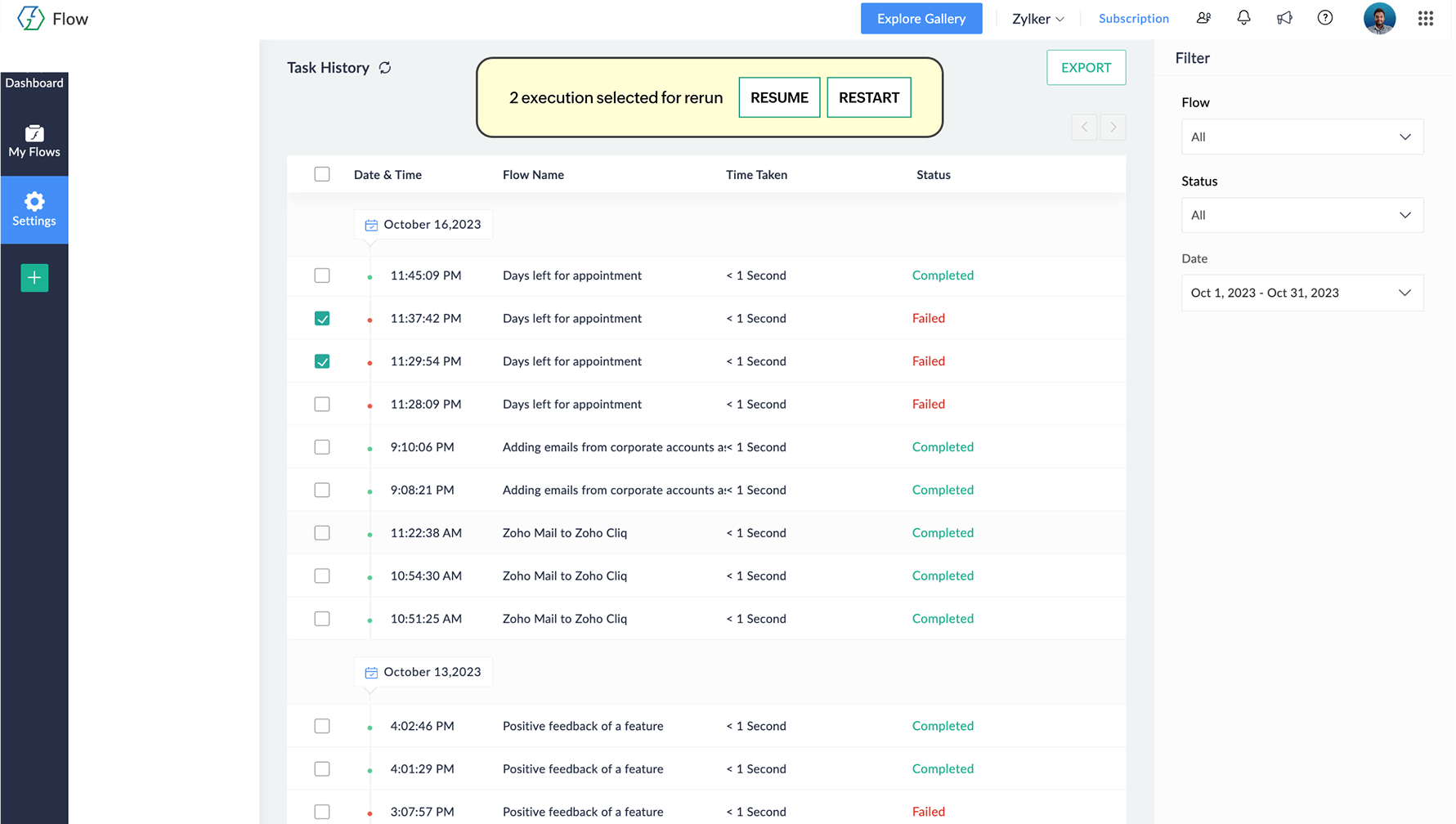 Included in your Zoho One subscription, Zoho Flow lets you build workflows of any complexity, from basic one-to-one app connections to multi-step automations involving multiple apps and logic. And the best part? You can do it all from a single place.