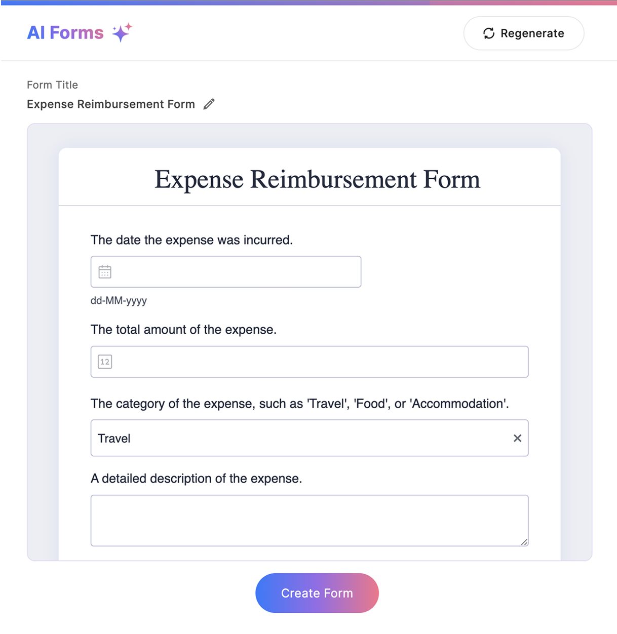 No technical skills? No problem. Just describe your needs, and our AI form maker handles the rest.
