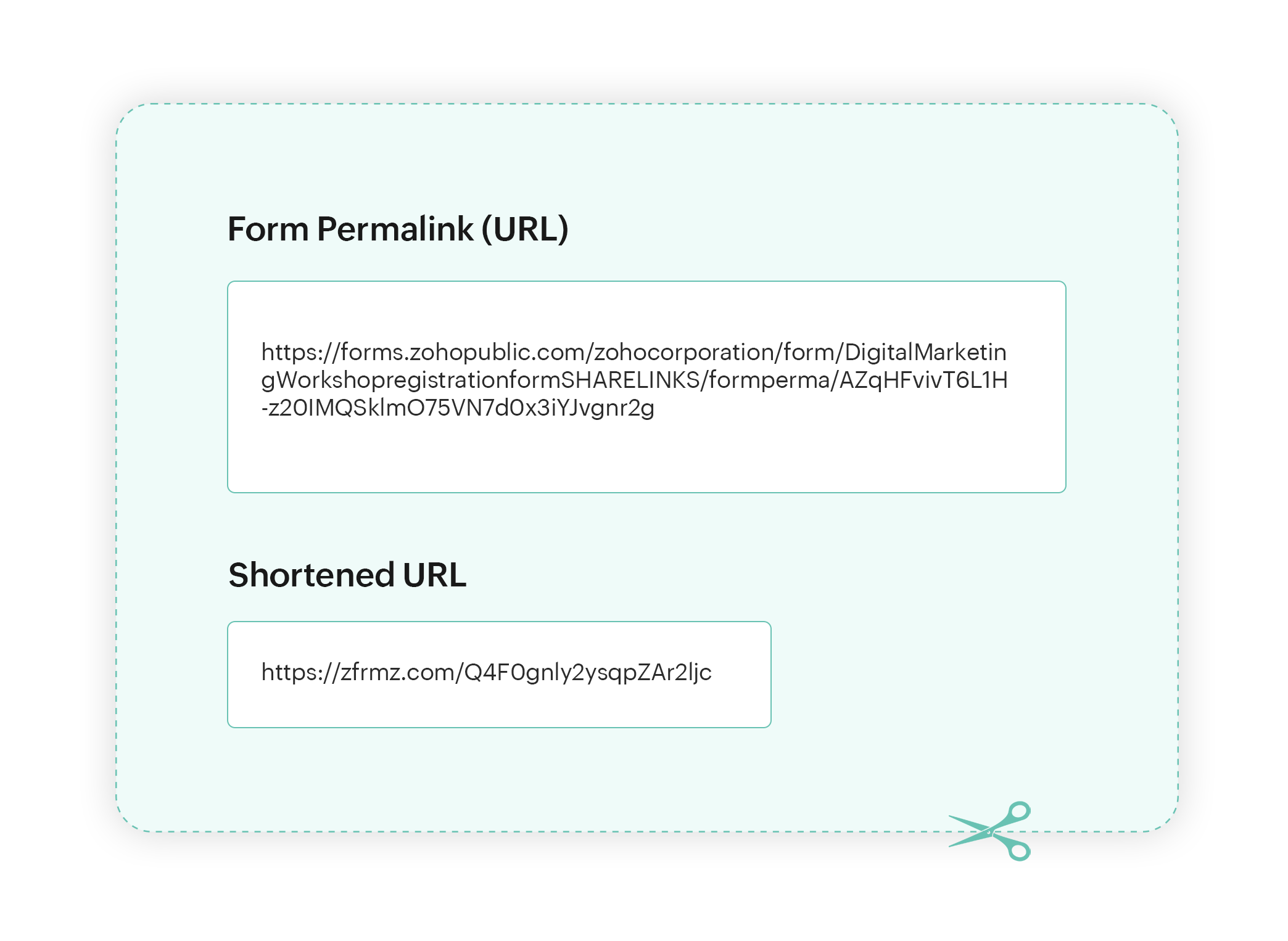 Create shortened URLs for forms and share these compact links that are much easier to use. Shortened links are especially helpful when sharing forms in social media posts and other places with character limits.