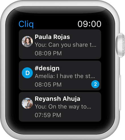 Ingin mendapatkan notifikasi di smartwatch? Kabar baik! Kini Anda bisa menerima notifikasi Cliq di Apple Watch atau WearOS dan langsung membalas pesan atau menjawab panggilan.