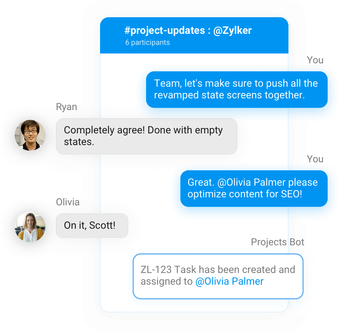 Zoho Cliq mendukung Apple CarPlay dan Android Auto. Minta asisten virtual favorit Anda–Siri atau Google Assistant—untuk membacakan pesan, menjawab panggilan, dan banyak lagi. Sepenuhnya handsfree sehingga Anda tetap bisa fokus mengemudi.