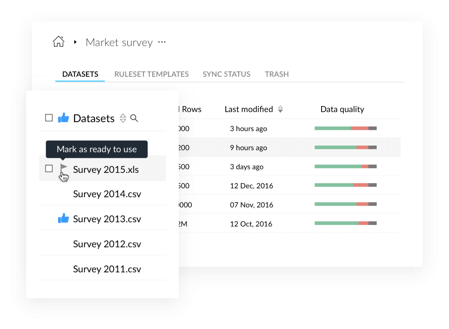 Setelah disiapkan, tandai data sebagai siap untuk digunakan sehingga pengguna lain di organisasi Anda tahu bahwa penyiapan data selesai dan data sudah siap untuk digunakan.