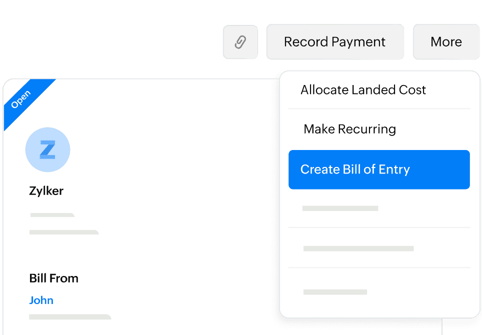 Convert fulfilled purchase orders into bills with a click, avoiding the need to create bills from scratch. Make any adjustments based on what you’ve arranged with the vendor.