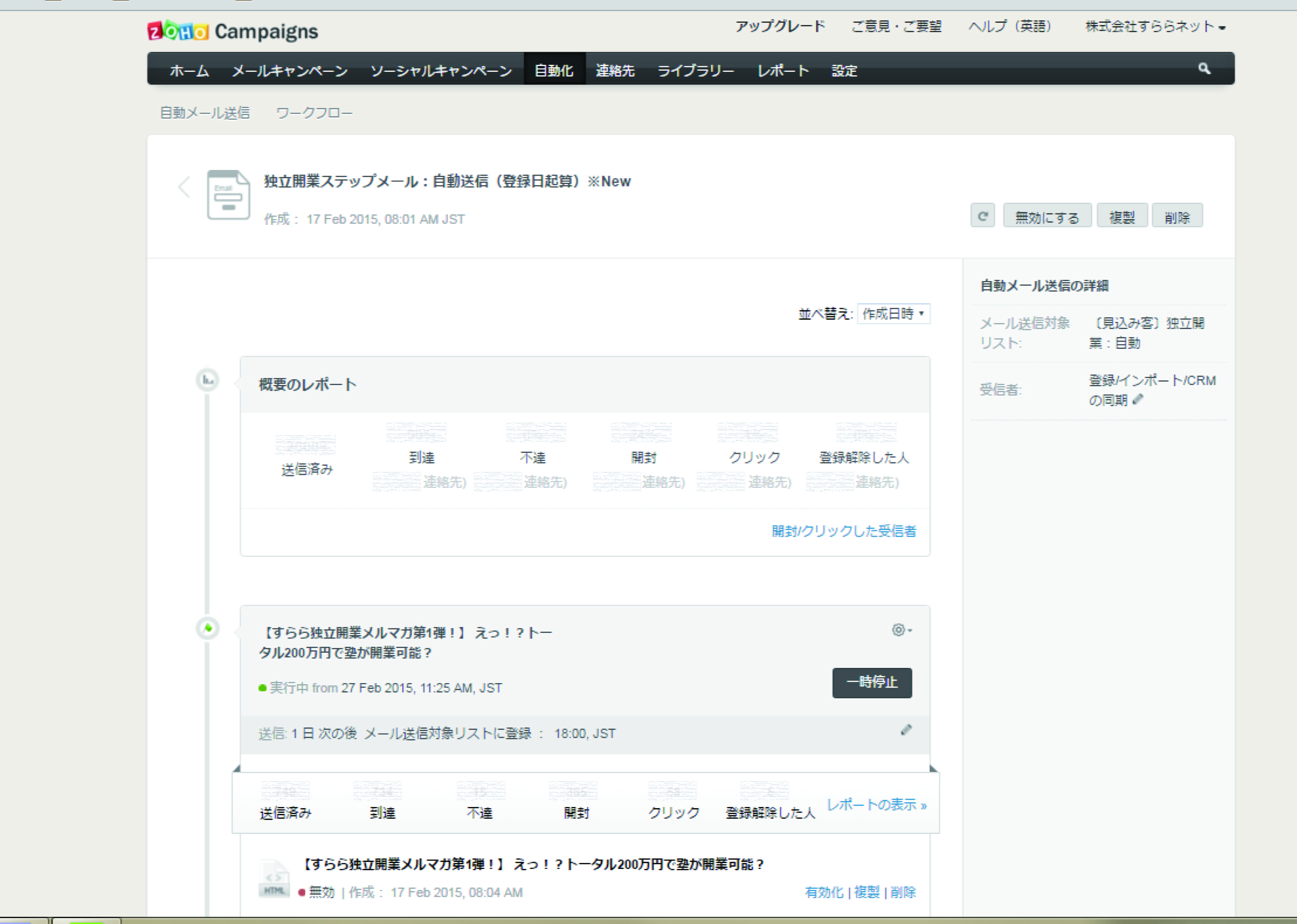 Zohoキャンペーンの導入時は、設定方法を覚えるのに多少苦労した。サービス自体も日本語化されたばかりで、公開情報が手に入らず、サポートに何度も問い合わせた。「メールはお客さまに直接配信するものなので、ツールの設定はそのままお客さまに影響を与える。設定も実行も慎重になった」と佐々木氏は当時を振り返った。 さらに、ステップメールの既存リストの移行作業が大変だった。35回のステップのうち、配信途中のリストが存在する。この既存リストをそれぞれ、未配信のステップから新しいツールにおける自動化設定に落とし込む作業が必要だった。一方で、新規リストは一本化して容易に設定に落とすことができた。