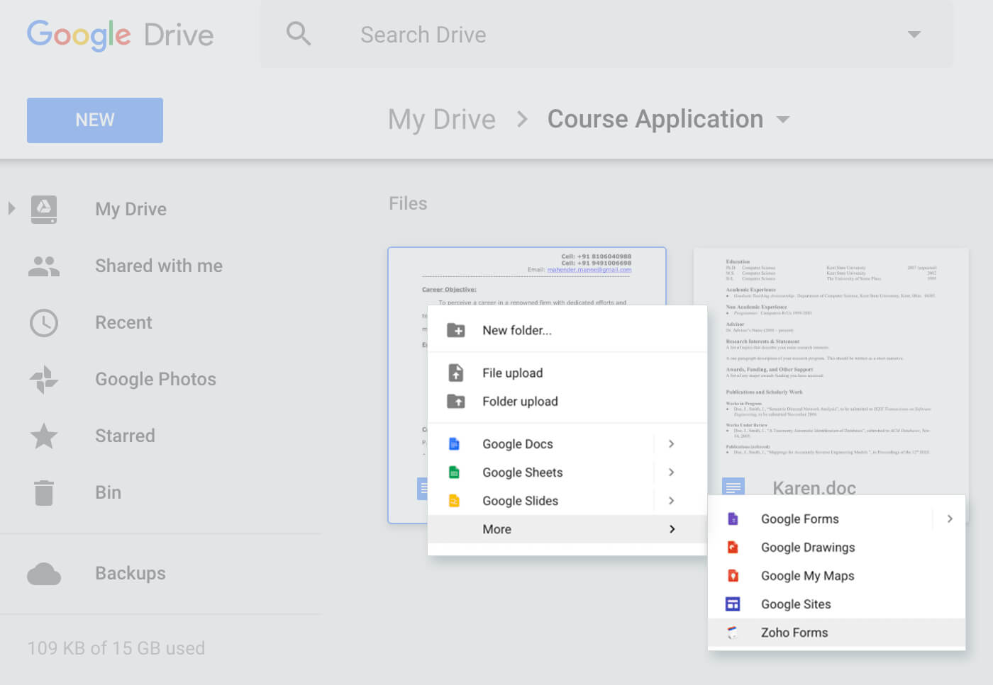 GoogleドライブからZoho Formsにアクセス