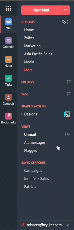 外部アカウントを、Zoho MailにPOPアカウントとして追加できます。同じウィンドウからさまざまなアカウントを管理できますが、署名や不在時の自動応答などの個別設定も可能です。Zoho Mailでは、POPプロトコル経由でのみ外部アカウントの設定をサポートしています。
