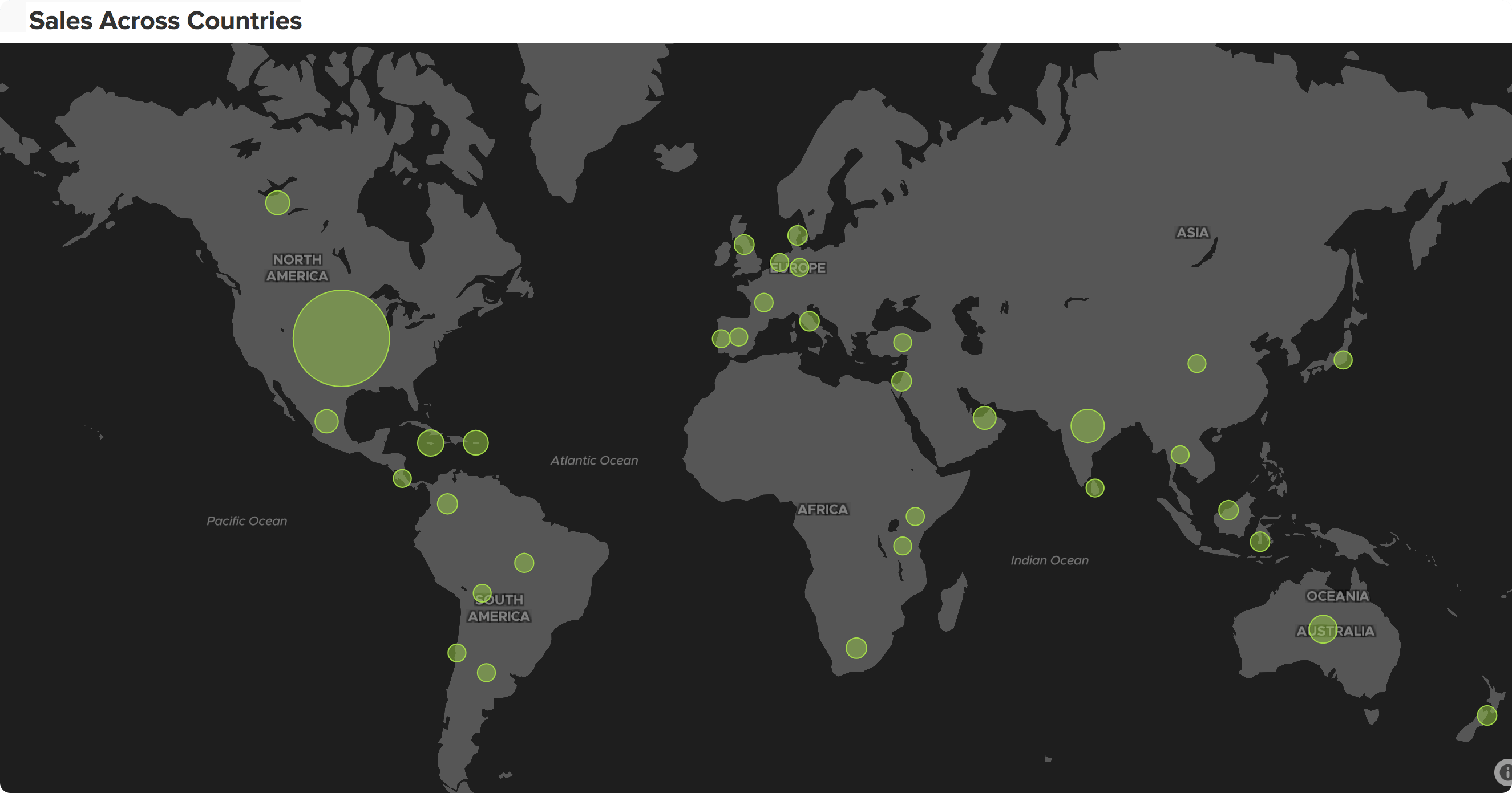 「Zoho Analytics 4.0」では、視覚化機能を大幅に改良しました。既存の40種類以上のグラフに加え、位置情報の視覚化に役立つジオマップ(※3)や、ヒートマップ(※4)、ダイヤルゲージ(※5)を追加しました。また、ダッシュボードは黒色背景のダークテーマの設定や柔軟なレイアウト変更が可能になりました。(※3)ジオマップ:位置情報を地図上に表す方法(※4)ヒートマップ:数字データの強弱を色で視覚化する方法(※5)ダイヤルゲージ:基準値との差をメーターで表示する方法