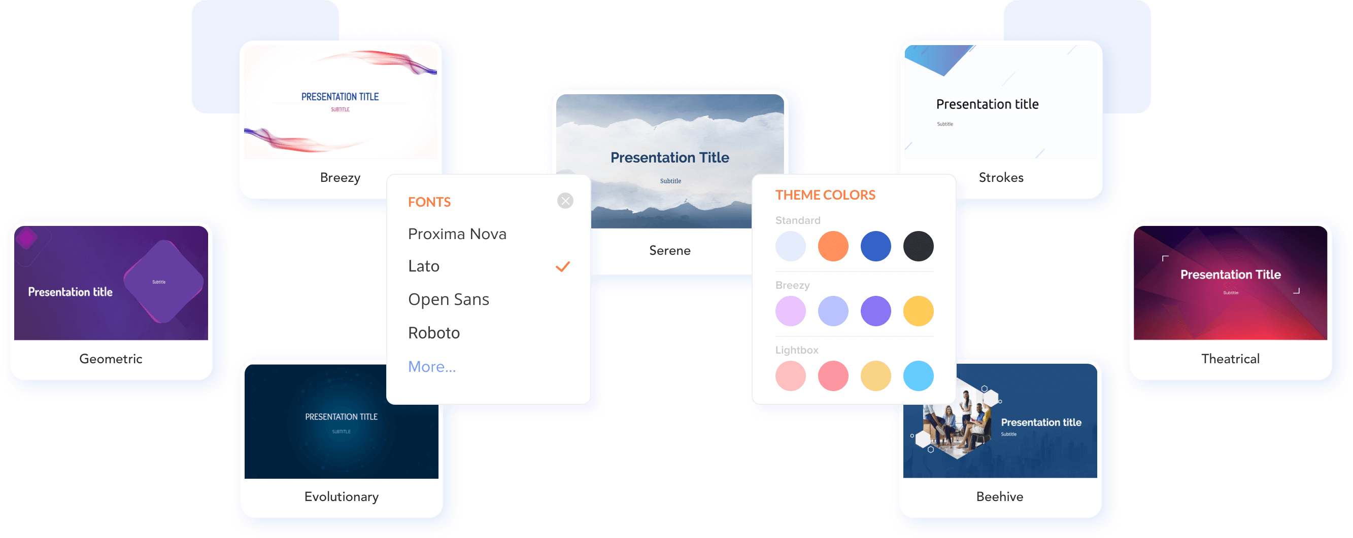 Showが提供する豊富なスライドテーマとレイアウトオプションから選べます。色の選択、フォントの変更、テキストの調整もかんたんです。