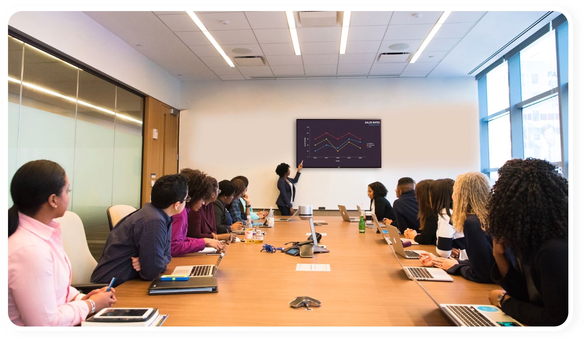 接続コードは必要ありません。ChromecastやAndroid TVを使用してプレゼンテーションを大画面に映すことで、大人数の集まりにも気軽に対応できます。