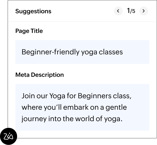 Use the Zoho LandingPage Content Assistant to seamlessly integrate relevant keywords into your landing page copy. Additionally, the SEO Assistant in Zoho LandingPage can help generate a page title and meta description based on the keywords entered, ensuring your landing page is optimized for search engines and attracts the right audience.