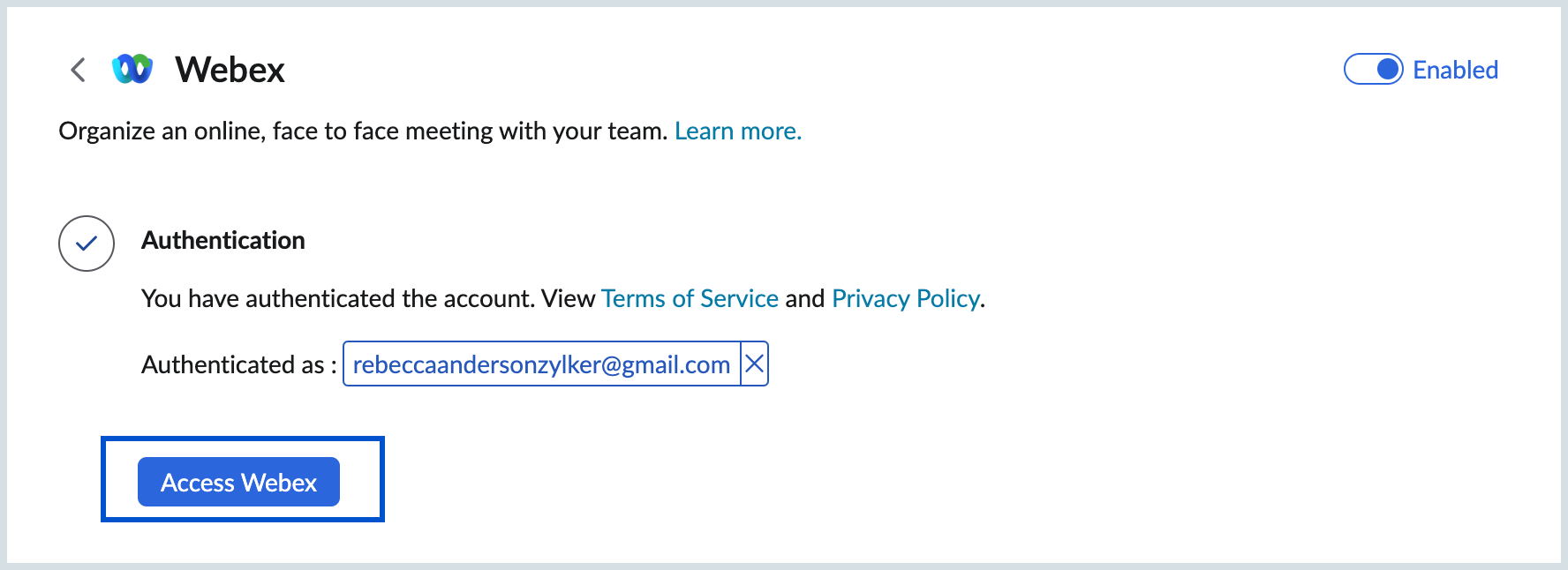 To authenticate Webex eWidget using your Zoho Mail account, follow the steps mentioned below: