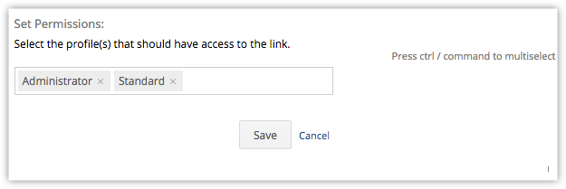 Nadat de aangepaste koppelingen zijn gemaakt, kunnen gebruikers met de machtigingen 'Aanpassen Zoho CRM' in hun profiel toegangsrechten instellen voor de aangepaste koppelingen. Op basis van deze machtigingen kunnen andere gebruikers de aangepaste koppelingen gebruiken.