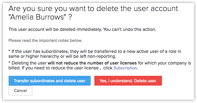 Als beheerder kunt u gebruikers verwijderen uit het CRM-account. Er zijn twee voorwaarden waar u rekening mee moet houden bij het verwijderen van een gebruiker:
