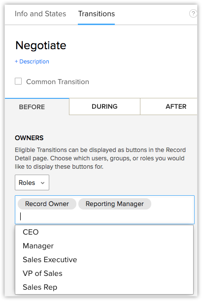 - Selecteer Rollen in Overgangen, onder Eigenaren.