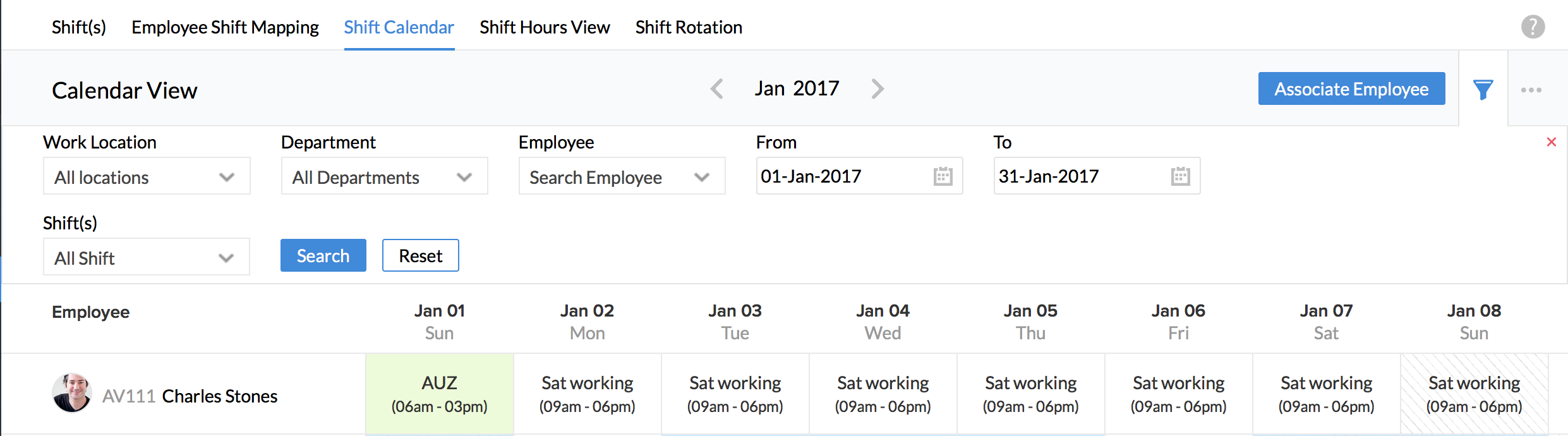 This way, users/employees will be able to see their own shift details. However, Reporting Managers can see their subordinates' shift details and also edit shift mapping.