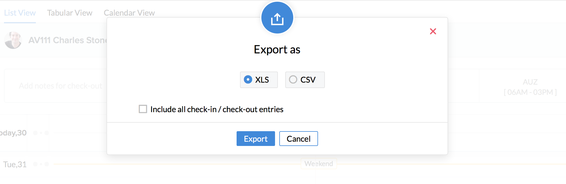 - Check the option 'Include all check-in/check-out entries' if you would like to have every check-in and check-out exported
