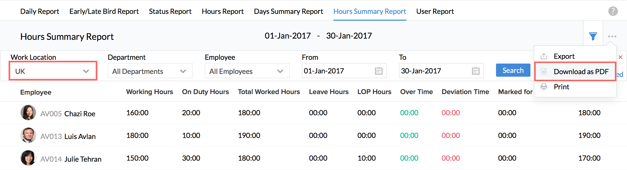 Note: 'Worked Hours' refers to the hours clocked-in by the Employee. 'Payable Hours' includes Weekends, Leave, Holiday along with the Worked hours of the employee.