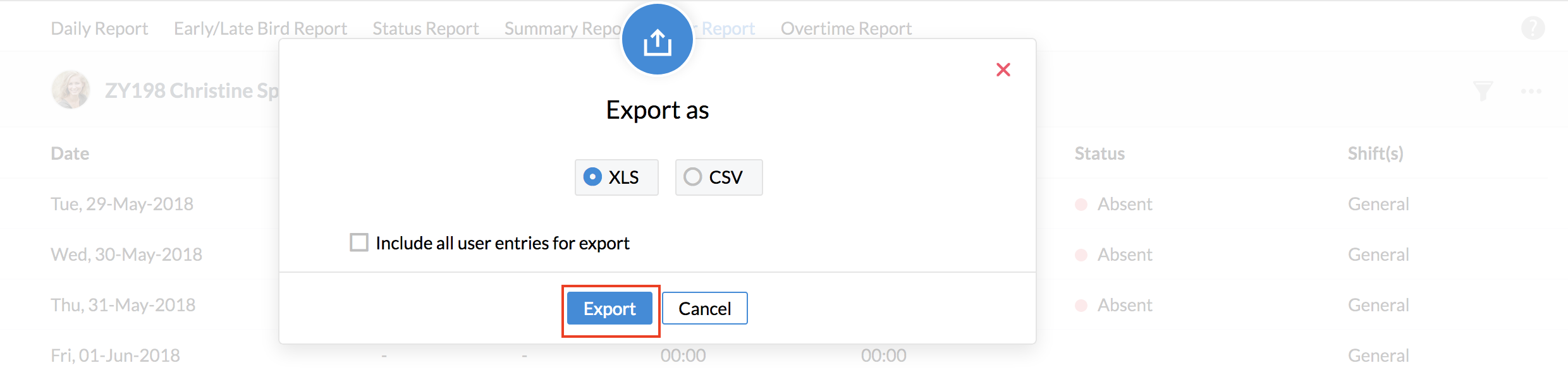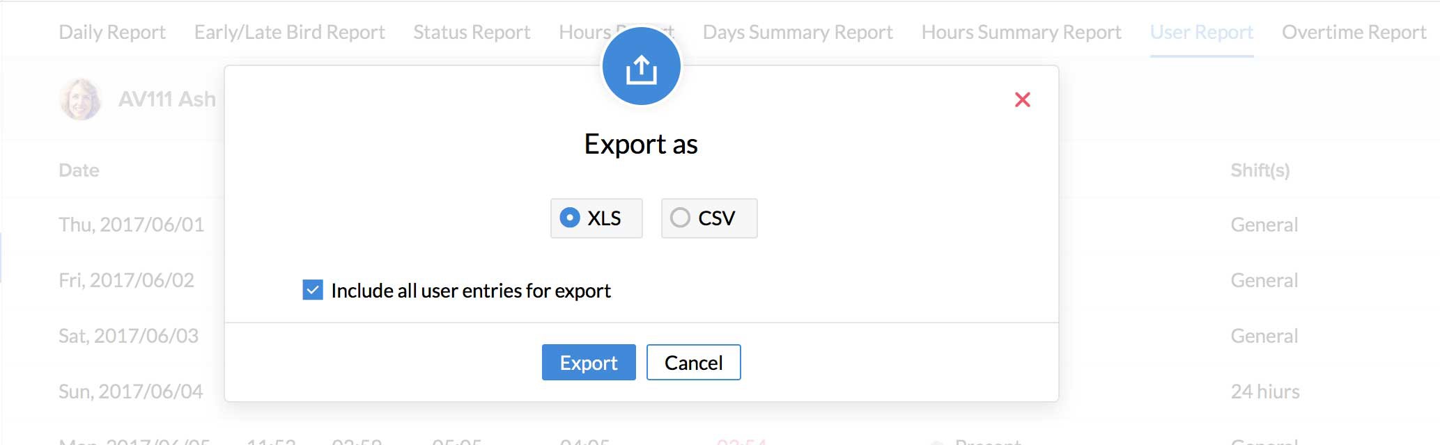 - Check on the 'Include all user entries' if you would like to export all attendance entries of all users