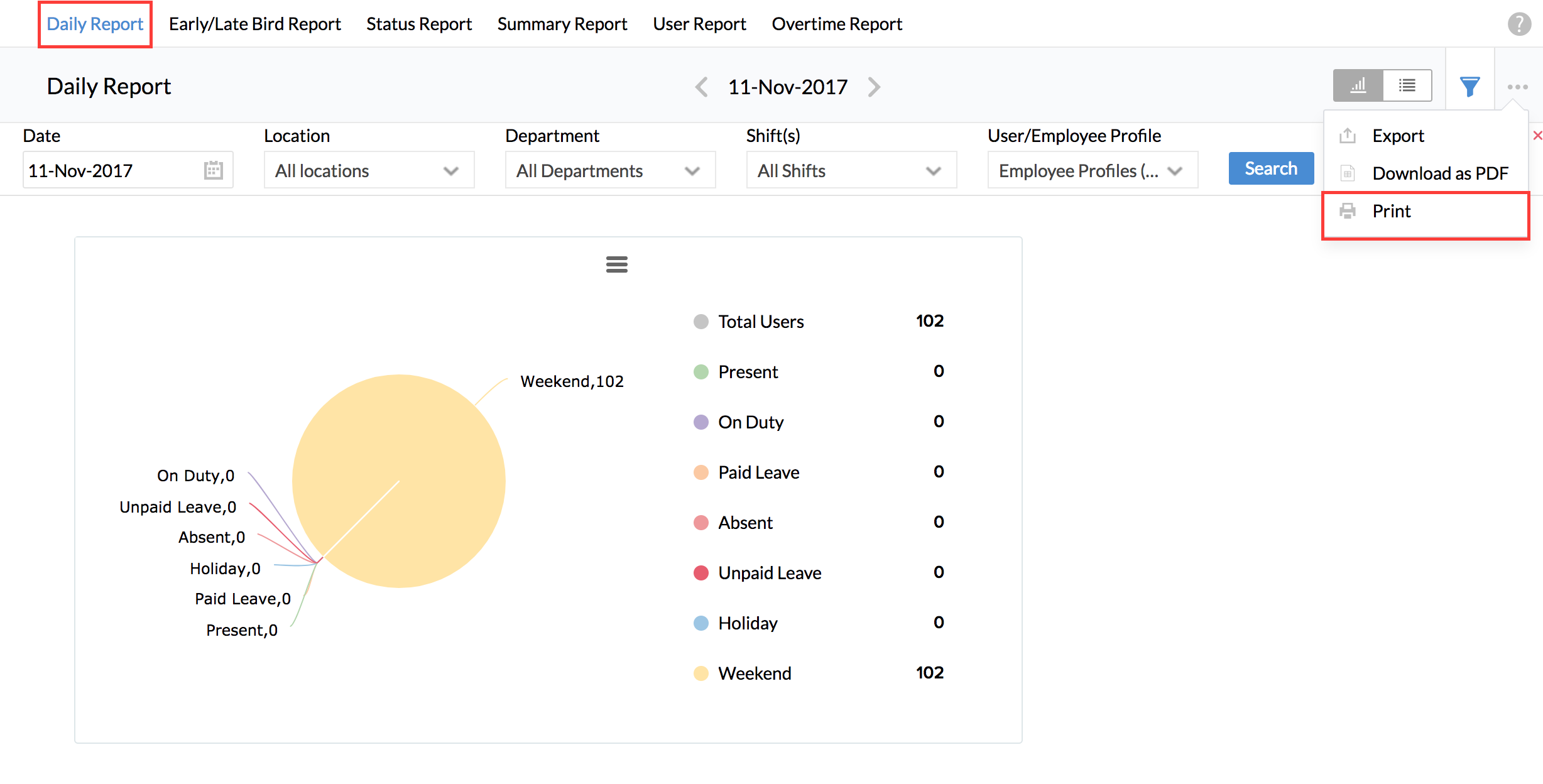 b. Paid Off - This refers to the Paid Weekends and Holidays. This is dependant on the Settings defined. Click here to know more about this Settings.