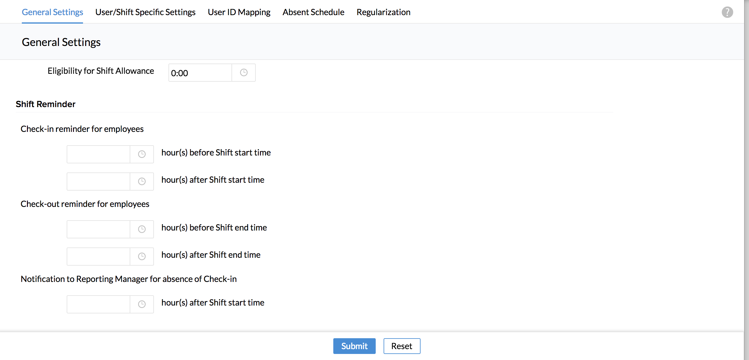 - Under 'Shift Settings', enter the number of hours, under 'Eligibility for Shift Allowance'