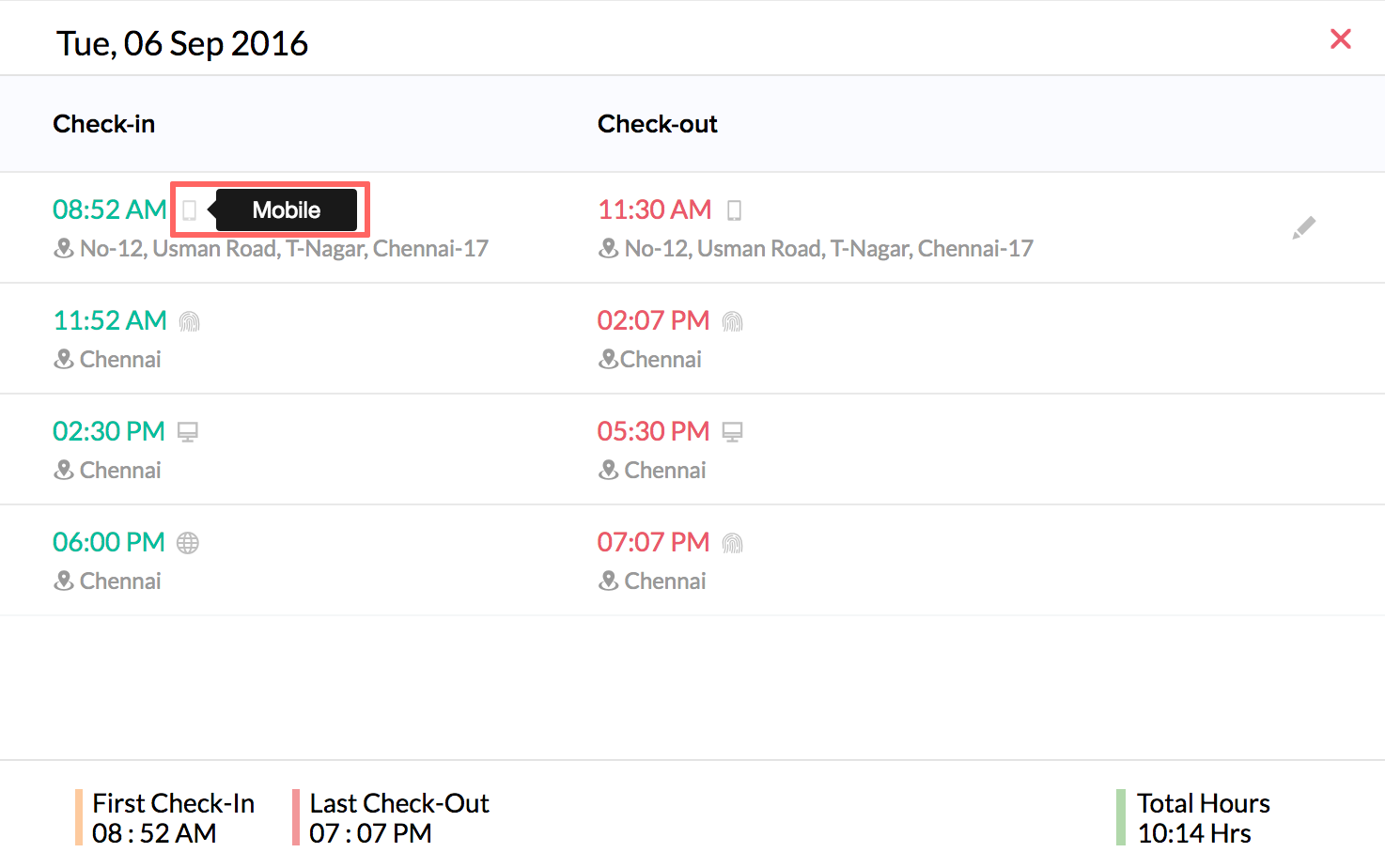 - Overtime - This is the number of extra hours of work done beyond the normal working hours. This is irrespective of whether Overtime is enabled or disabled under Settings
