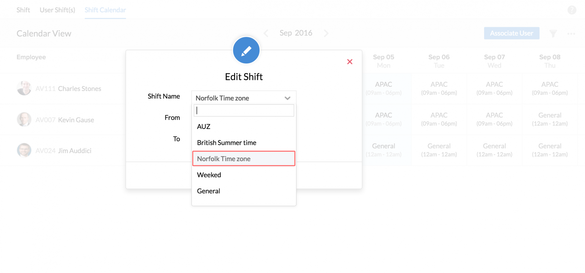 Note: The employees who belong to the location at the point of time when you associate the shift, will only be part of the shift. For eg. If you have selected 'California', then the employees who join in 'California' at the time that you associate the shift will be included as part of the shift. The ones who join after you have completed this association, will not be part of the Shift. To include them as part of the shift, you will have to either associate the employees by selecting 'Users' or click on 'Associate Employee' and select 'California' from 'Location' again, to make the new employees part of the shift.