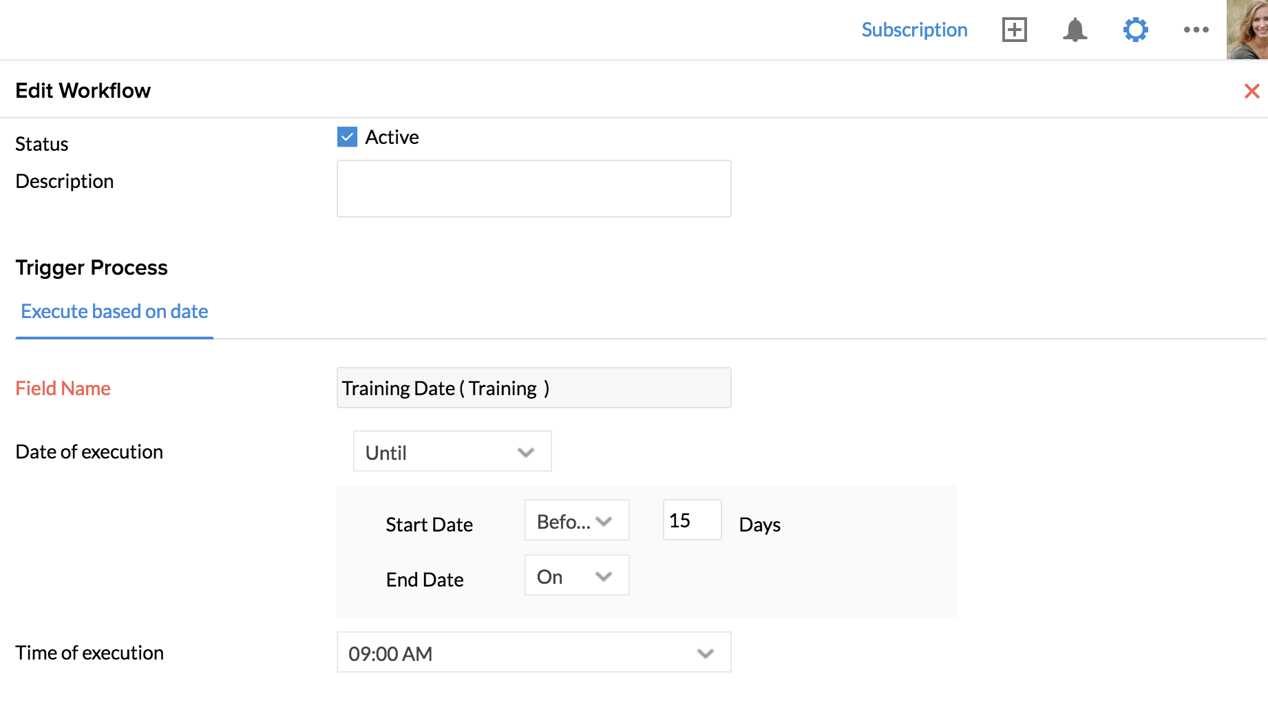 Let's consider this scenario: Reminding your employees on their training date and time. When you provide execution training time and date in Time Based Action, an email can be sent to the employees.