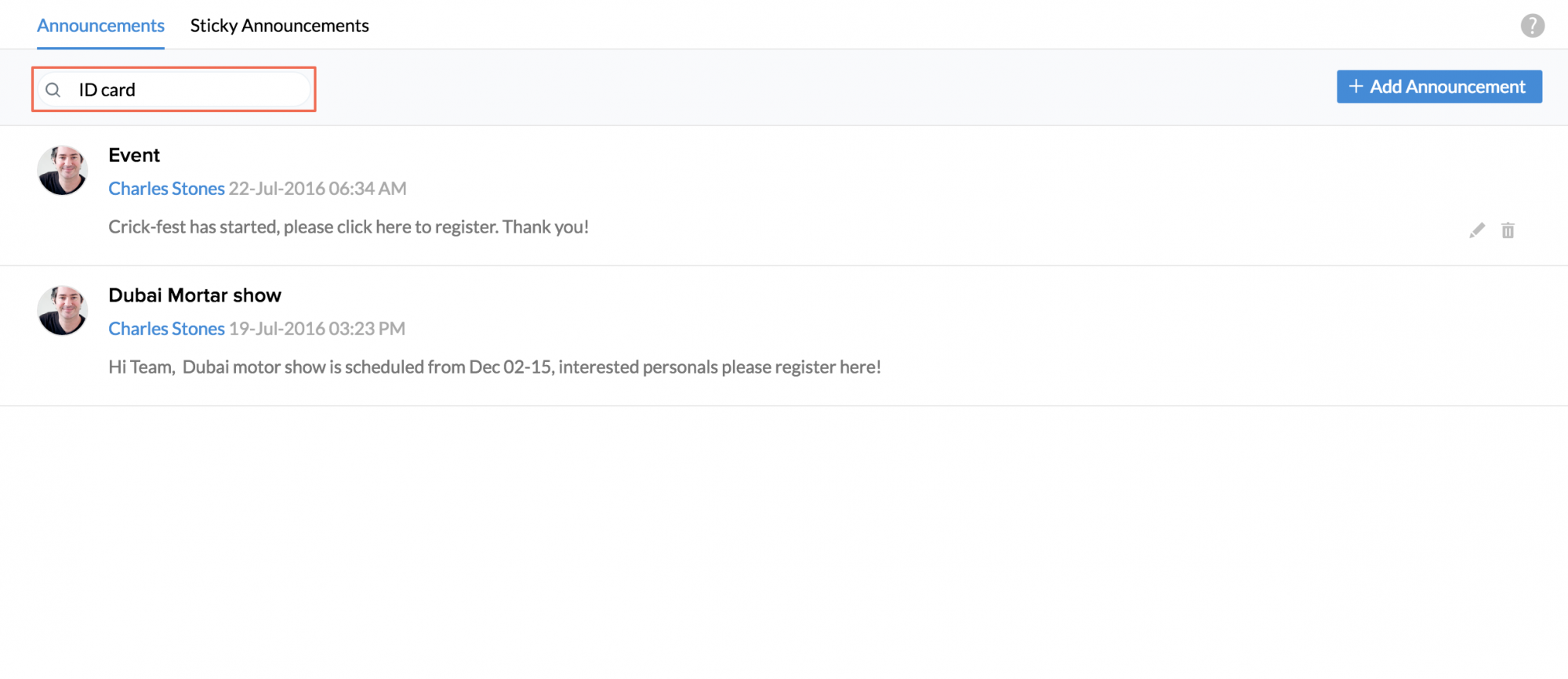 Note: The Key word could be from the subject or from the content of the announcement. The announcements that are even in the disabled status can be pulled out using this method. The same applies for Sticky Announcements too.