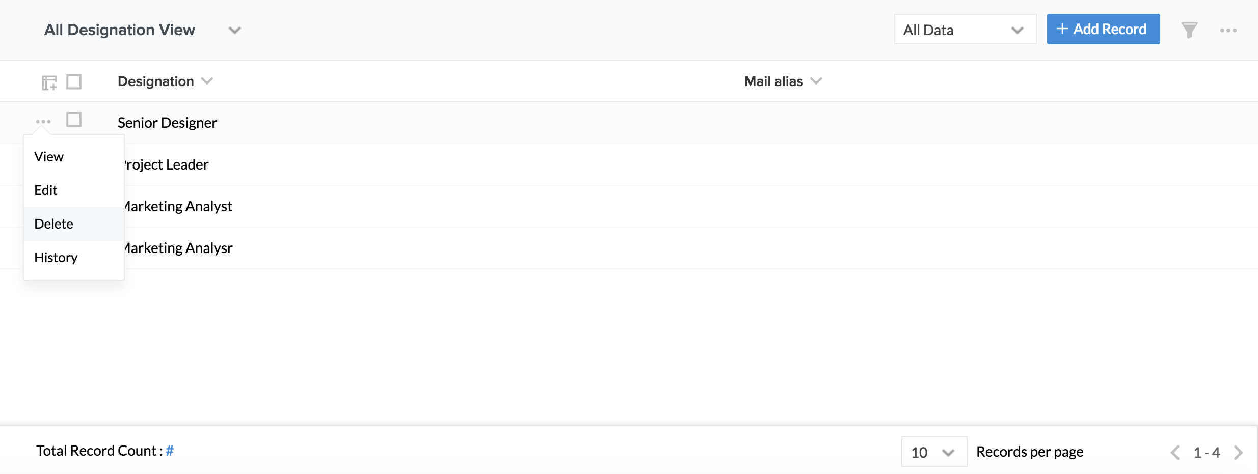 - Hover your mouse over the record to see the ellipsis icon on the left hand side