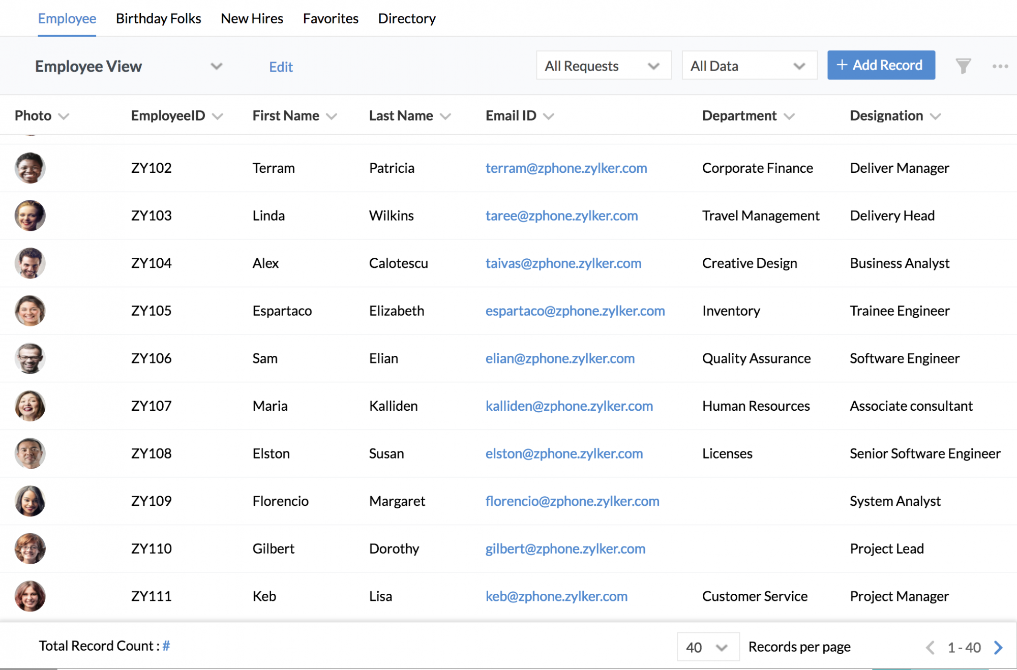 - For example, if you would like to edit the view of the Employee tab, go to Organization > Employee from your home screen