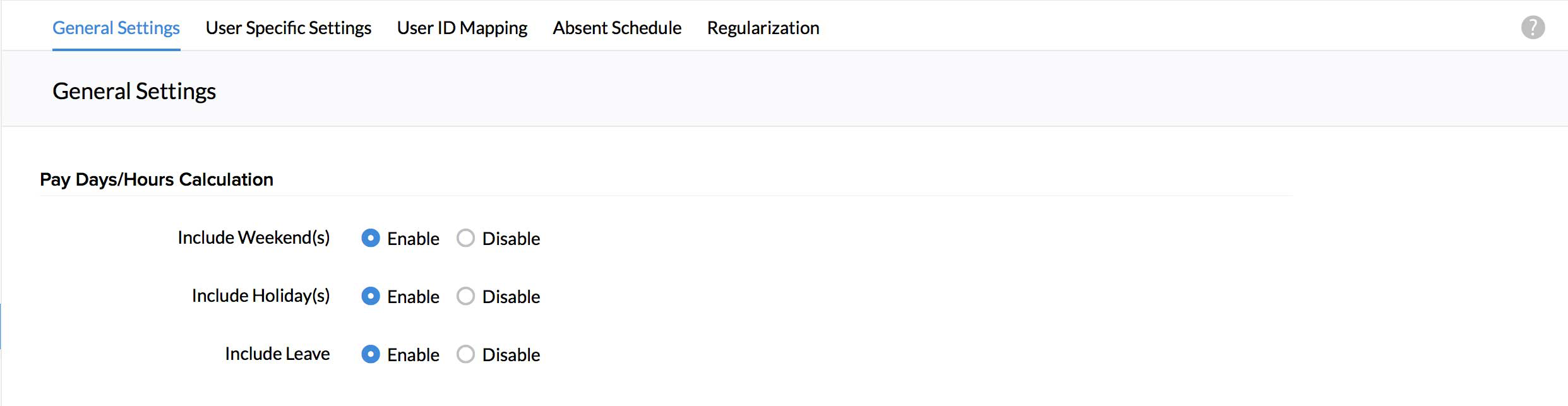 This Settings helps you define whether you would like to include Weekends/Holidays and Leave while calculating the Days/Hours for Pay calculation.