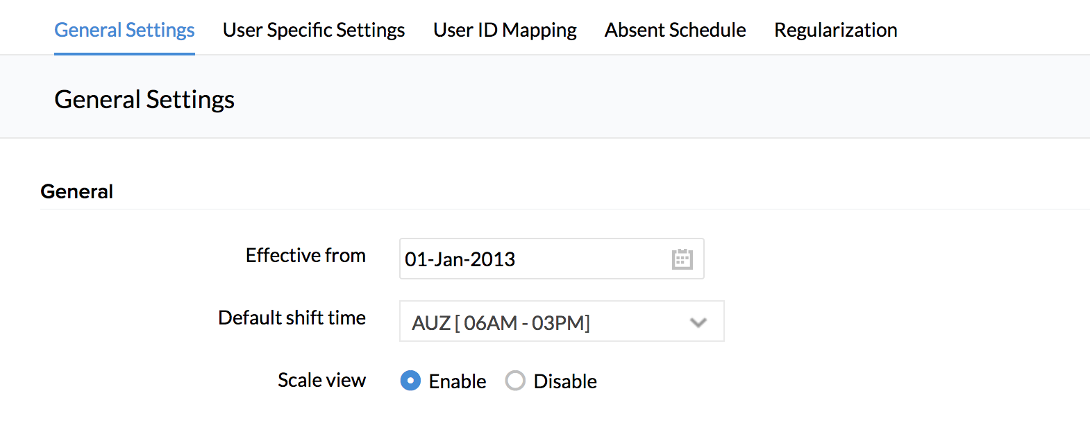 Defining Attendance Settings is essential to track the attendance of your employees. Using Attendance settings, you can have the hours of work fixed for your organization, which will in turn feed into inputs like the later comers, early birds, over-time workers etc. All the Settings pertaining to your organization's attendance can be done in the General Settings page.