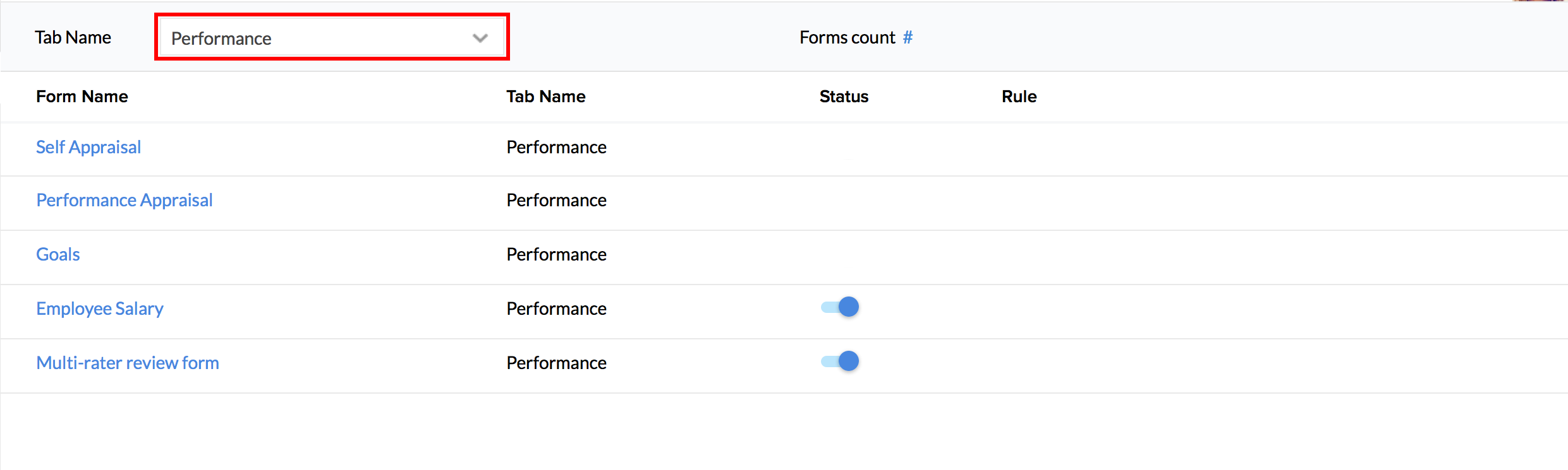 Tip: Ensure that you have enabled the respective modules under Performance > Settings > Performance Modules