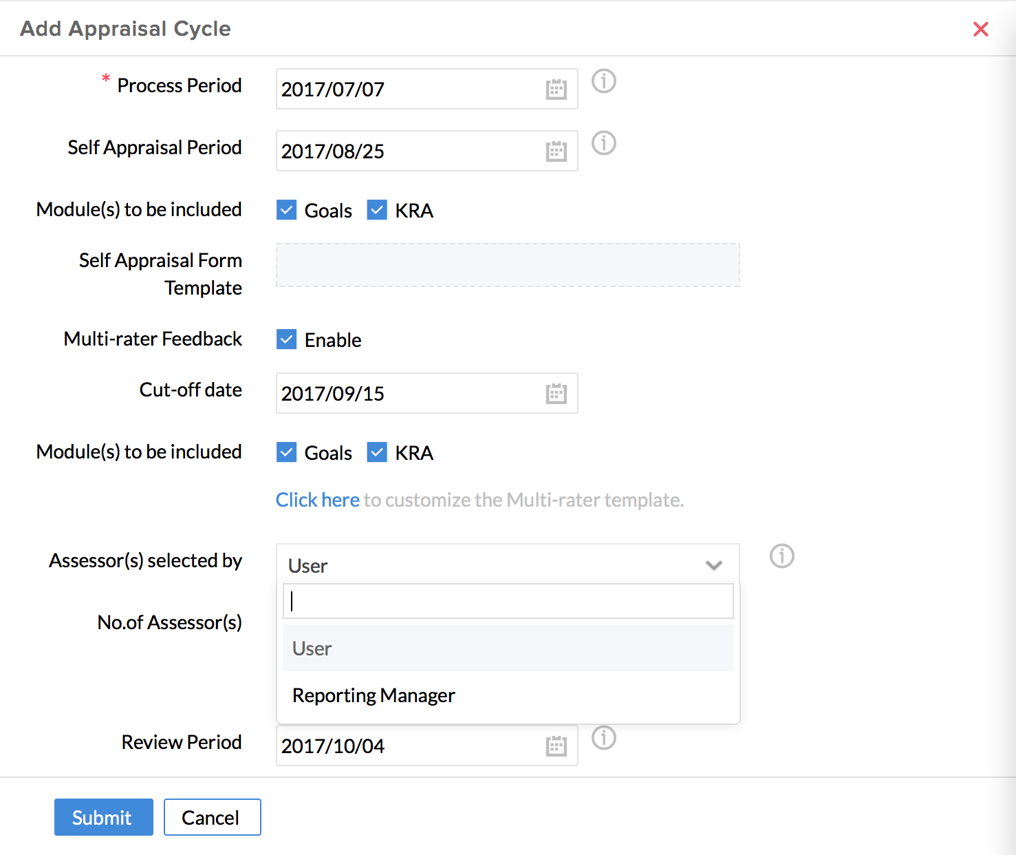 Yes. This is possible. As per your organization policies, you may have set that the user/appraisee should select the multi-raters. However, in case of scenarios like long leave, unexpected leave or in cases where the user/appraisee has not selected the multi raters within the cut-off date, you cannot keep the Appraisal process waiting. In such scenarios, the Reporting Manager of the user/appraisee will, by default have the permission to add multi-raters for the cycle.