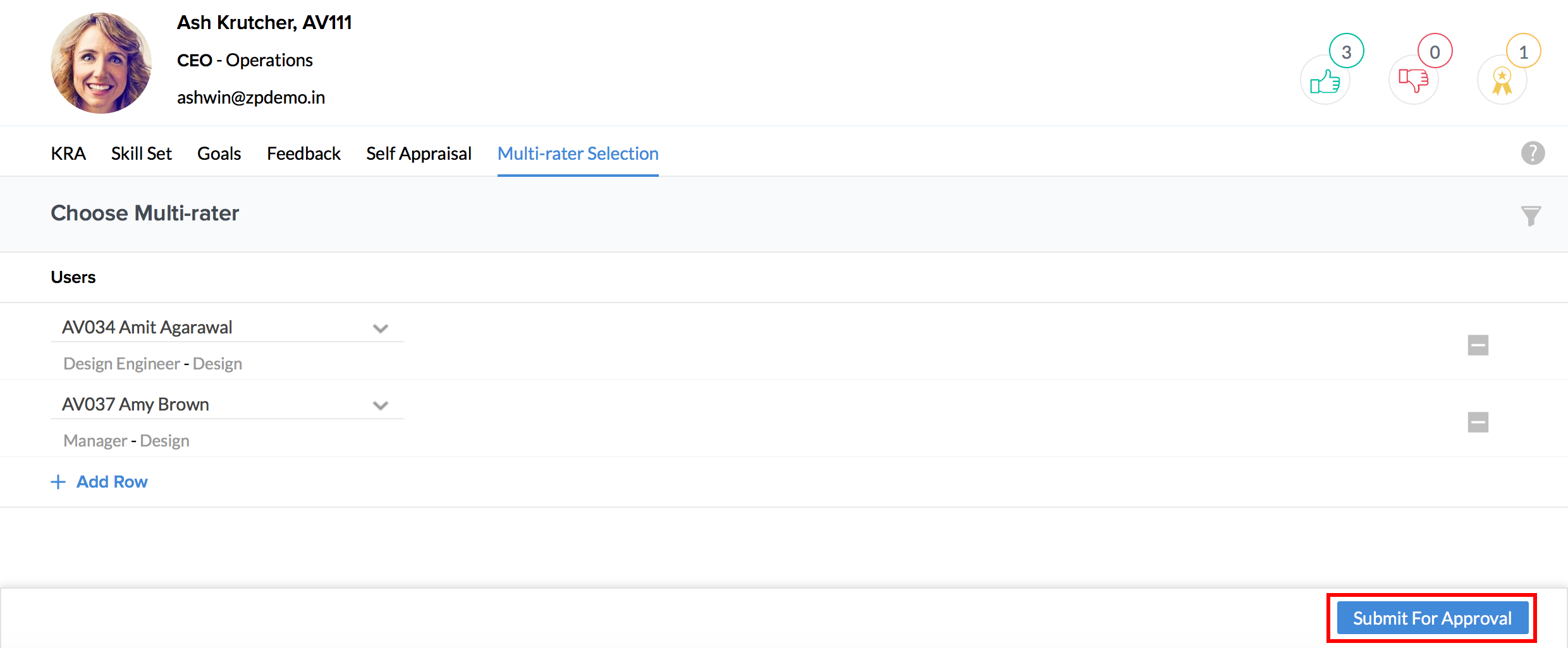 - Click on the '+ Add Row' icon to add more than one Multi - Rater