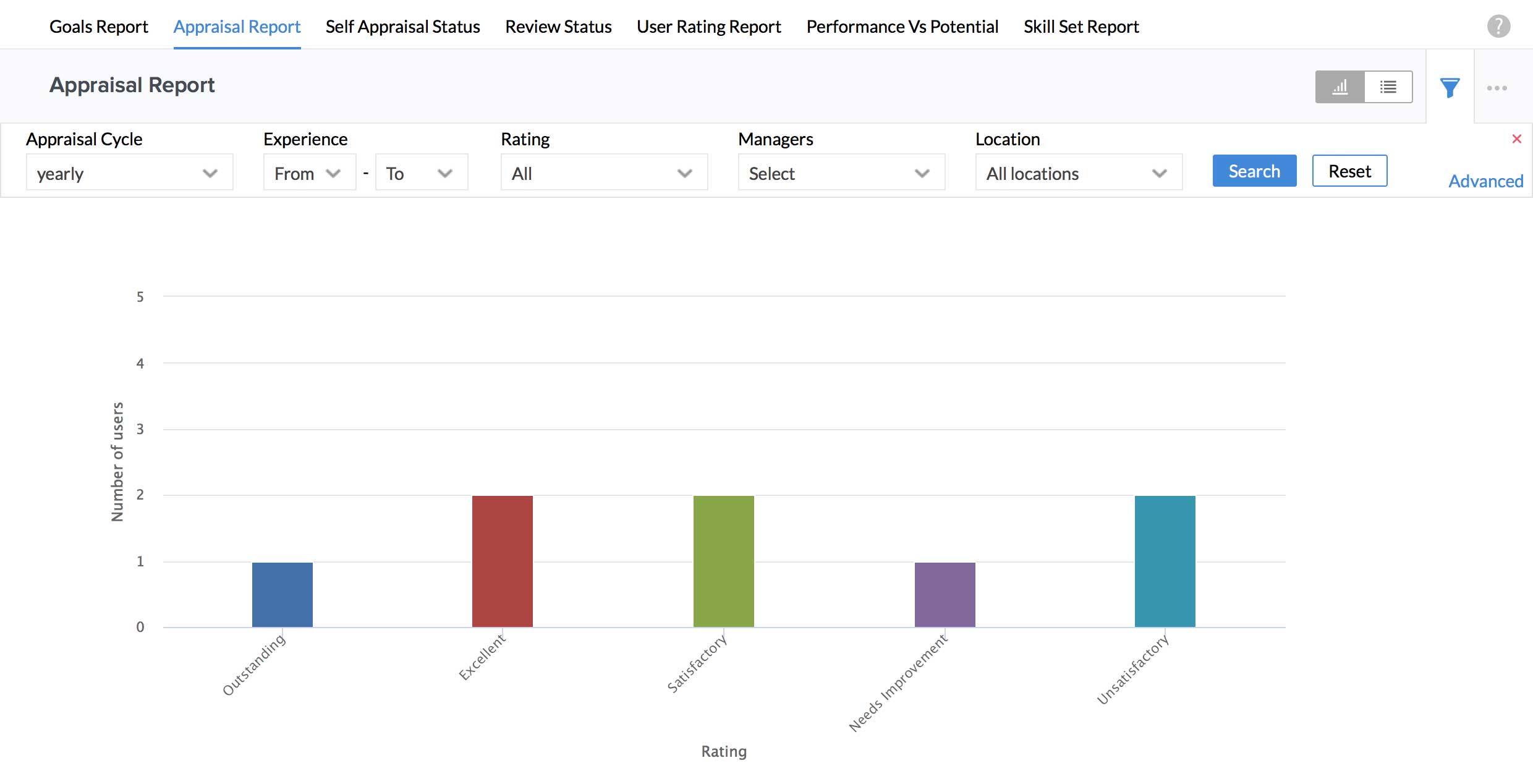 In some cases, you might have the need to see the list of employees who fall under a particular rating (For eg - 'Needs Improvement') to assess training needs etc. In this case, you can follow the steps given below to obtain a report.
