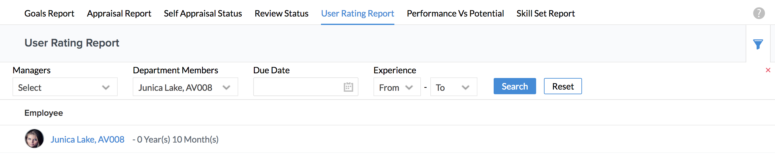 In order to measure performance, it is important to observe the growth of an employee. The 'User Rating Report' helps you achieve this.