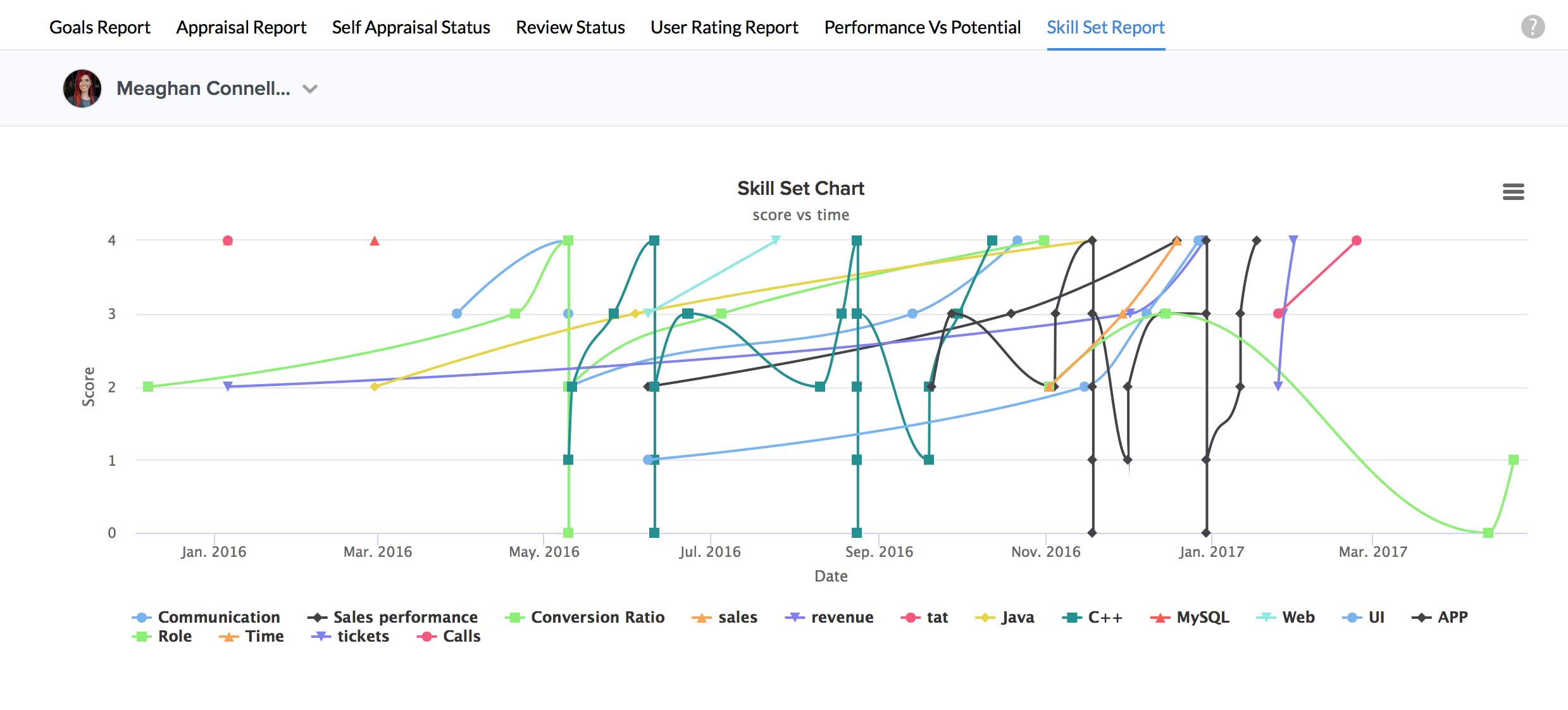 You will be able to see the Skill Set score across a period of time for the employee.