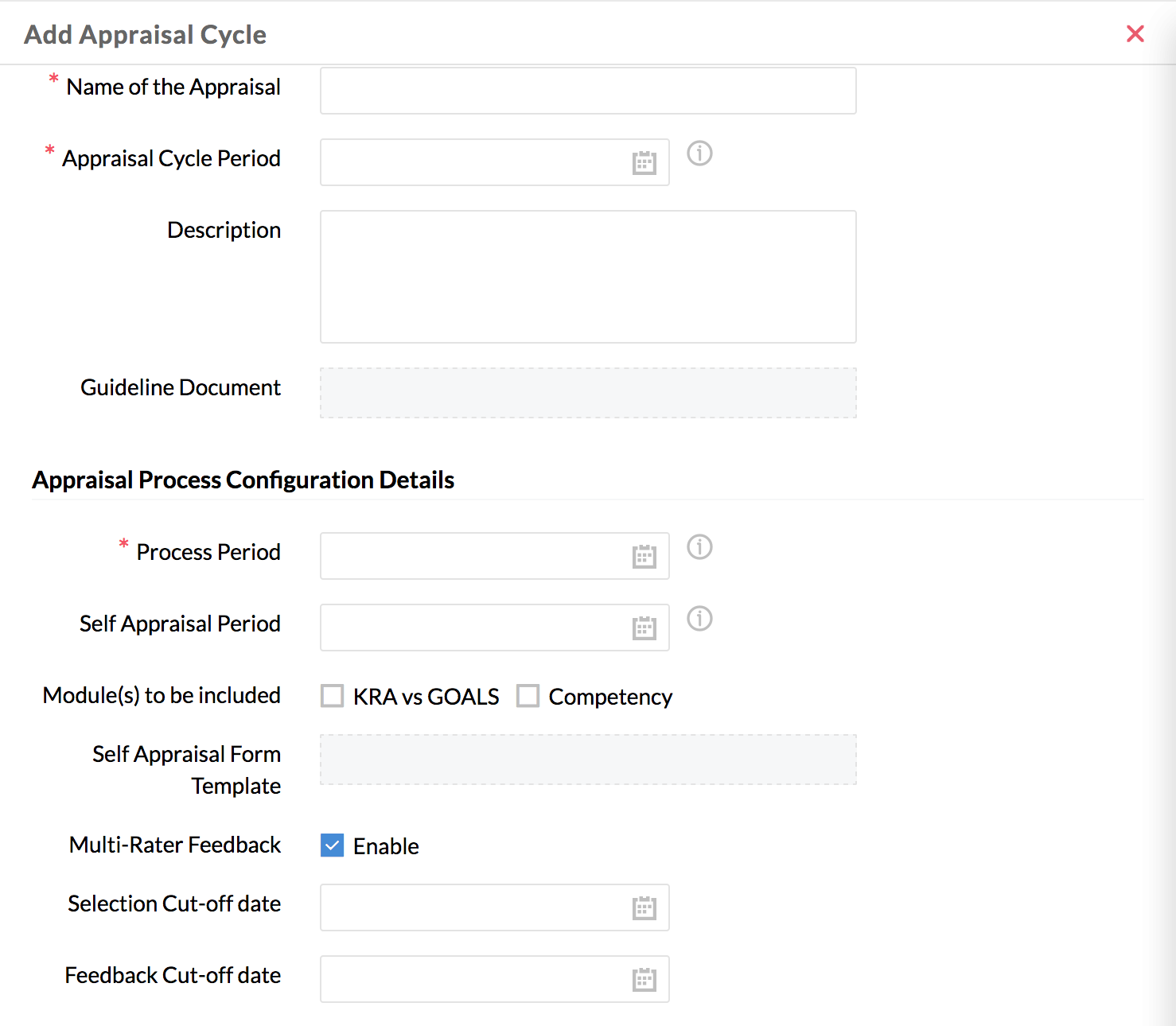 - Enter the required details like Name, Appraisal Cycle period etc