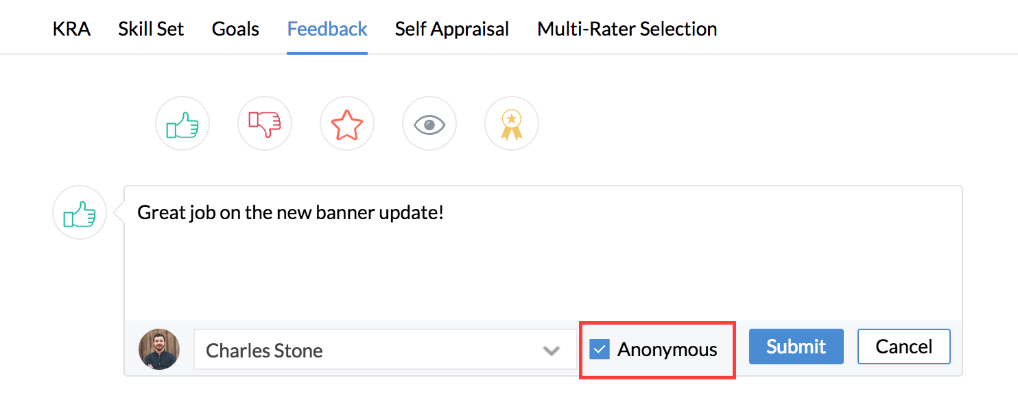 This is possible if you have enabled Anonymous feedback for your organization. Anonymous feedback helps the feedback mechanism working and also ensures a healthy relationship between members of a department.