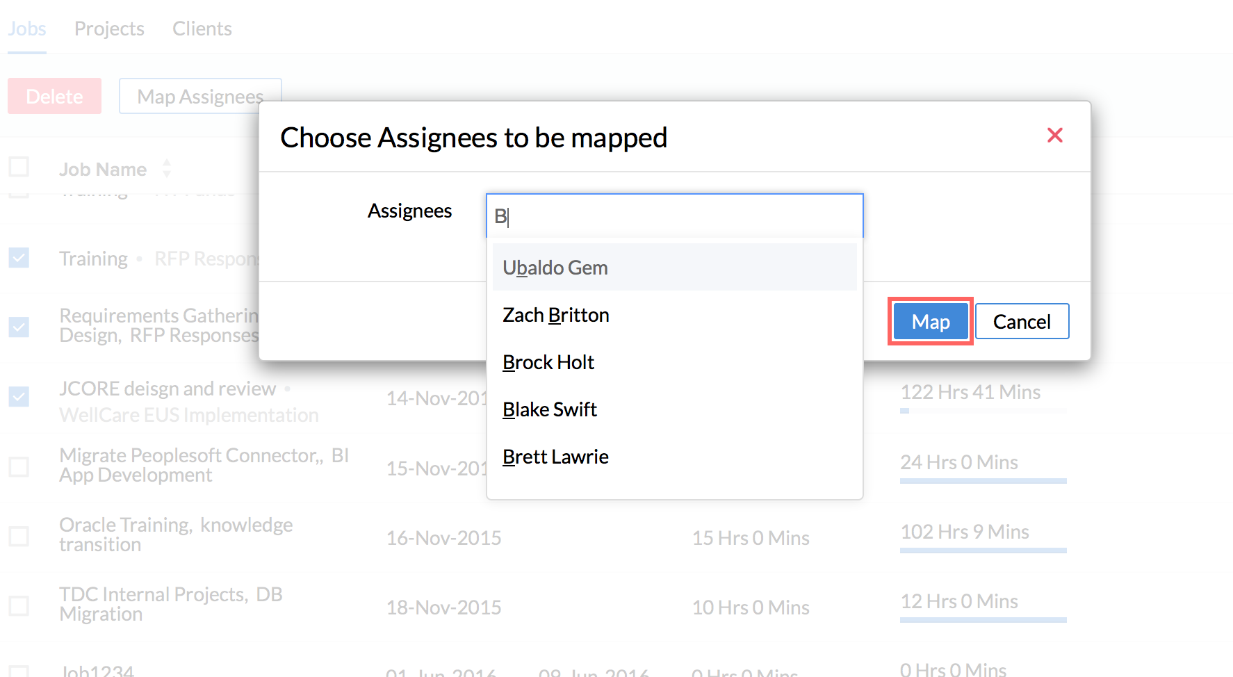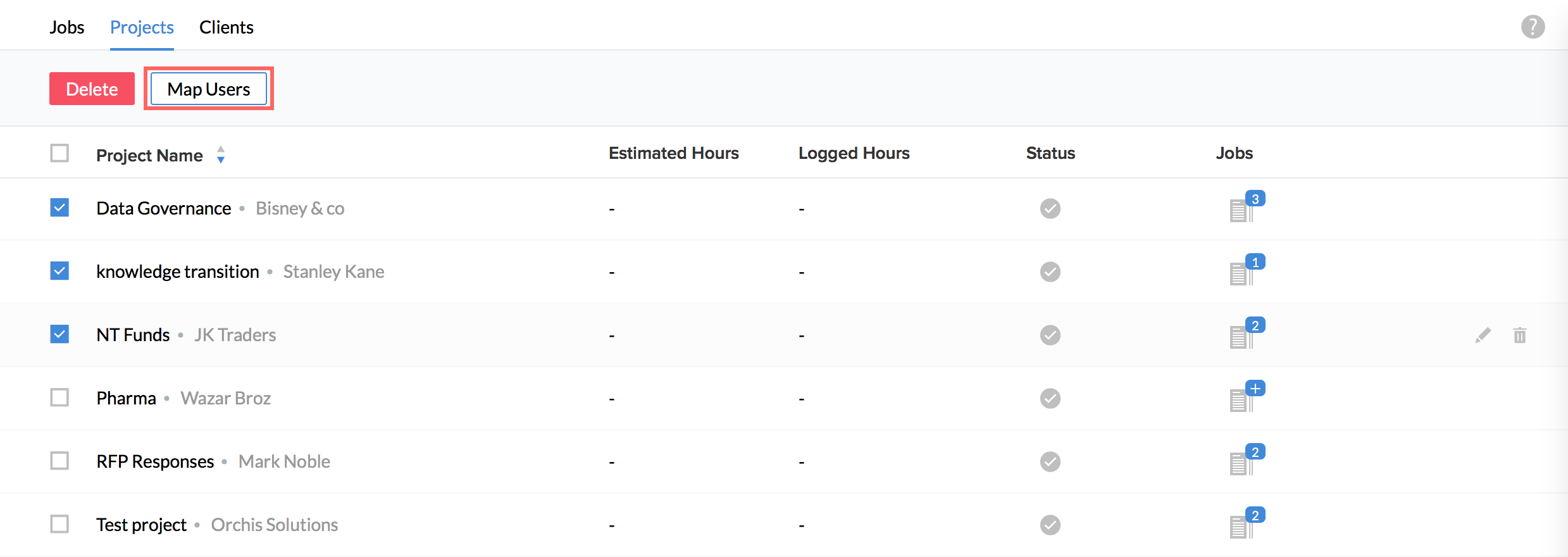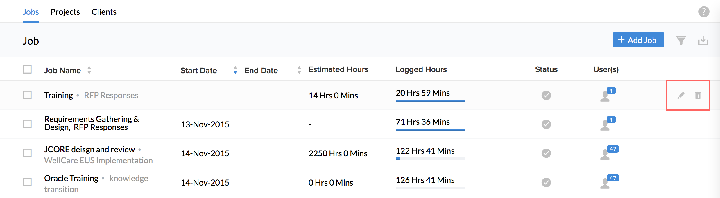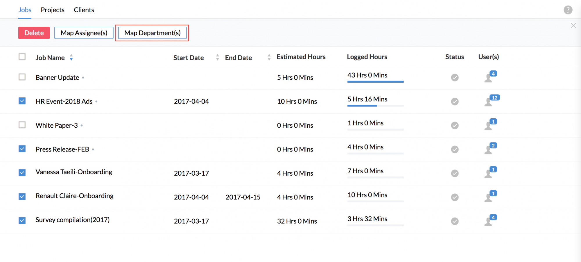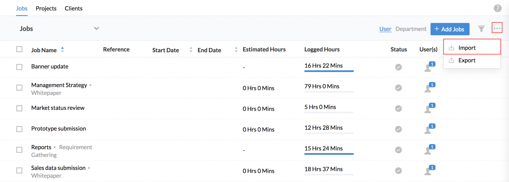 Your jobs will now get imported onto the system and you will be able to see them along with the users assigned if you go to Projects/Jobs > Jobs