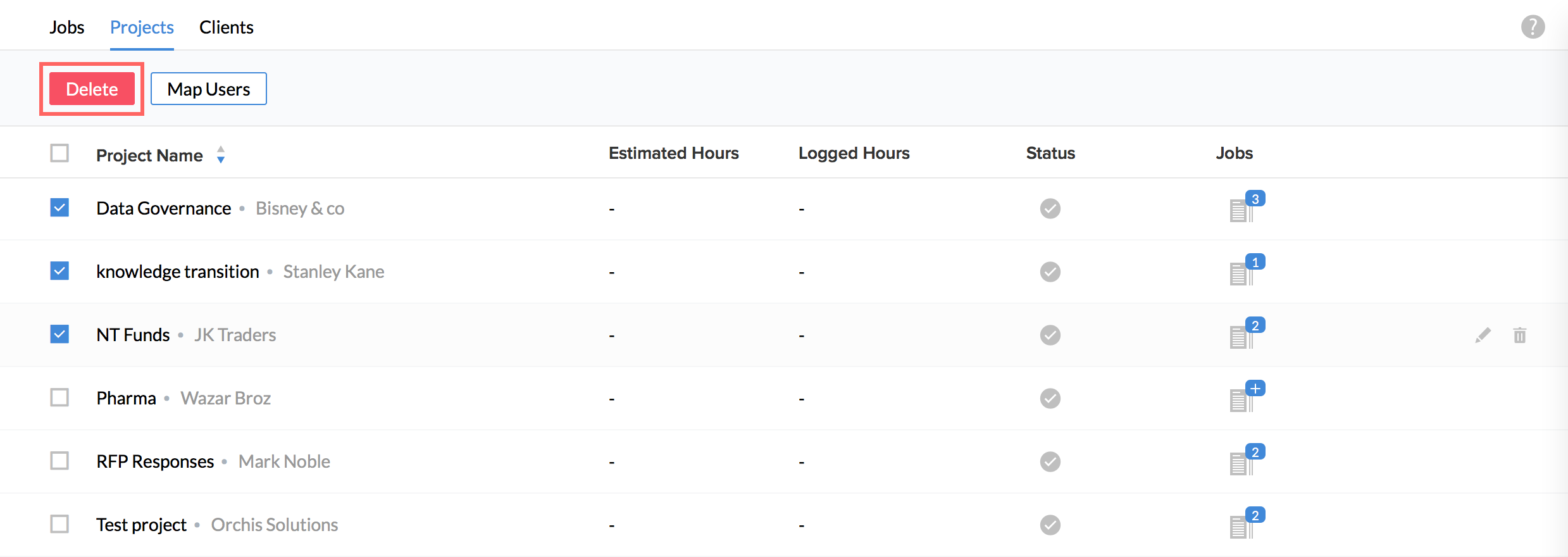 You will be able to see the jobs that are in-progress for the selected Project.