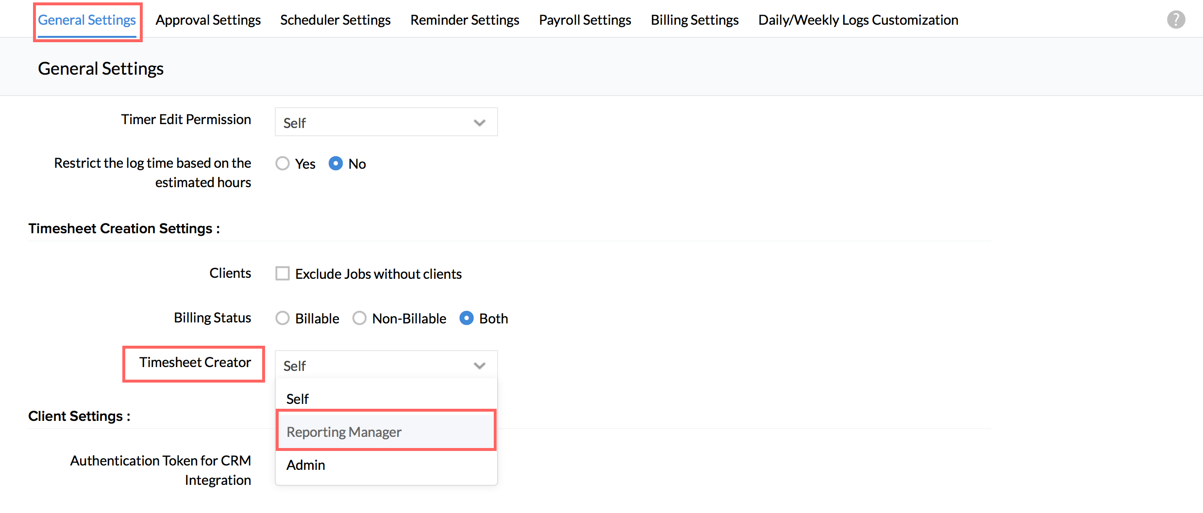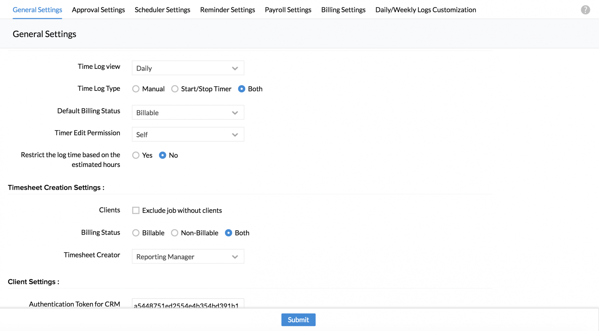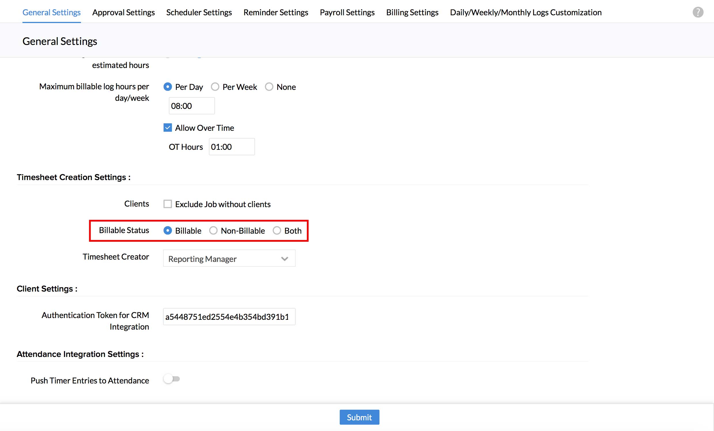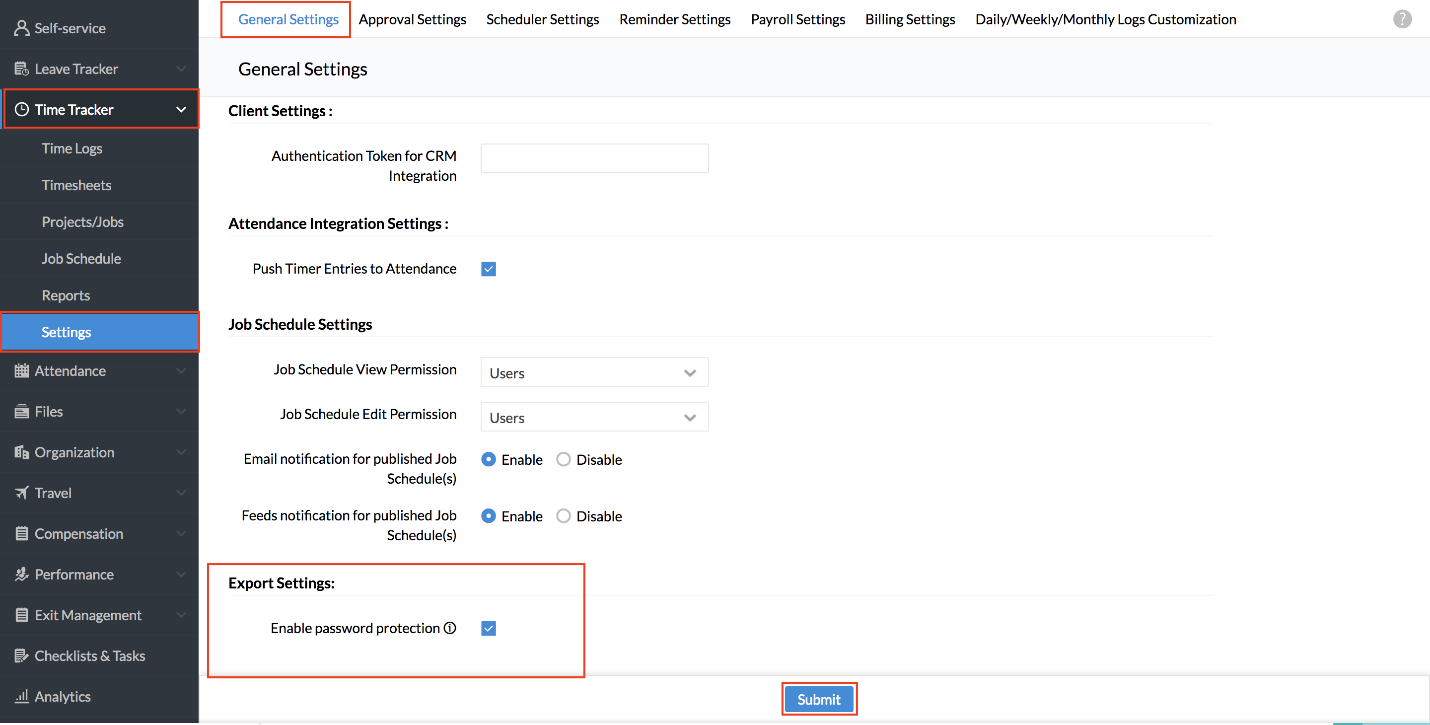 - From your Home page, go to Time Tracker > Settings > General Settings