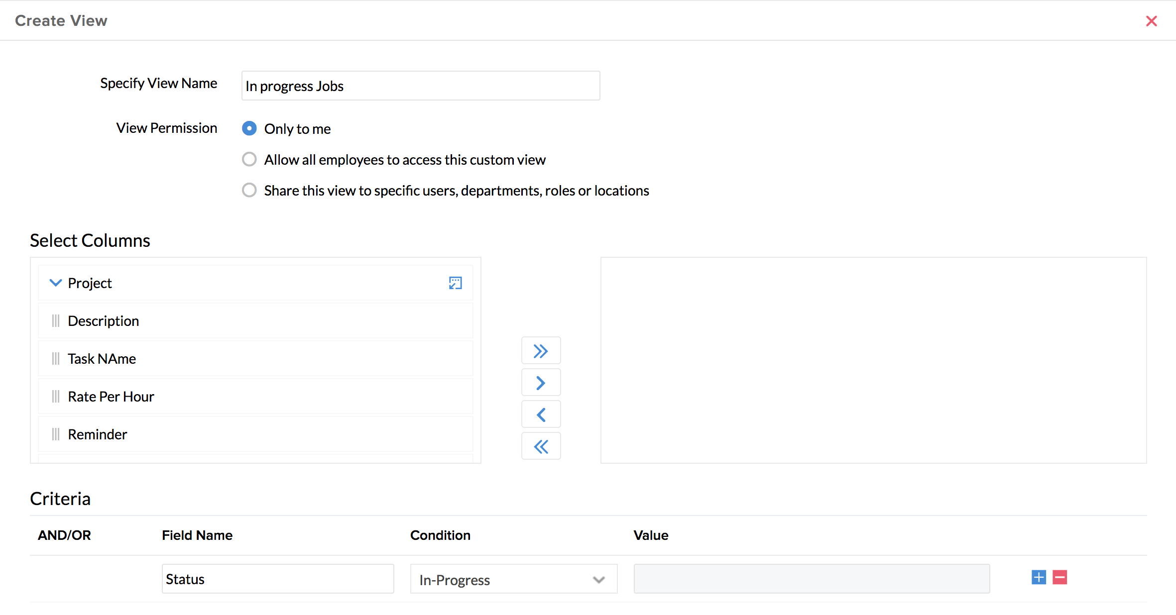 For eg. If your view should include only Jobs which are in the in-progress status in your view, you can set the condition here.