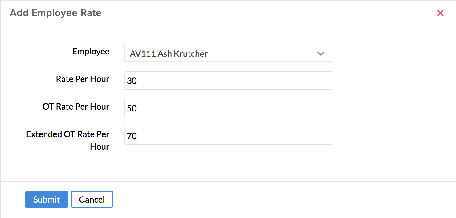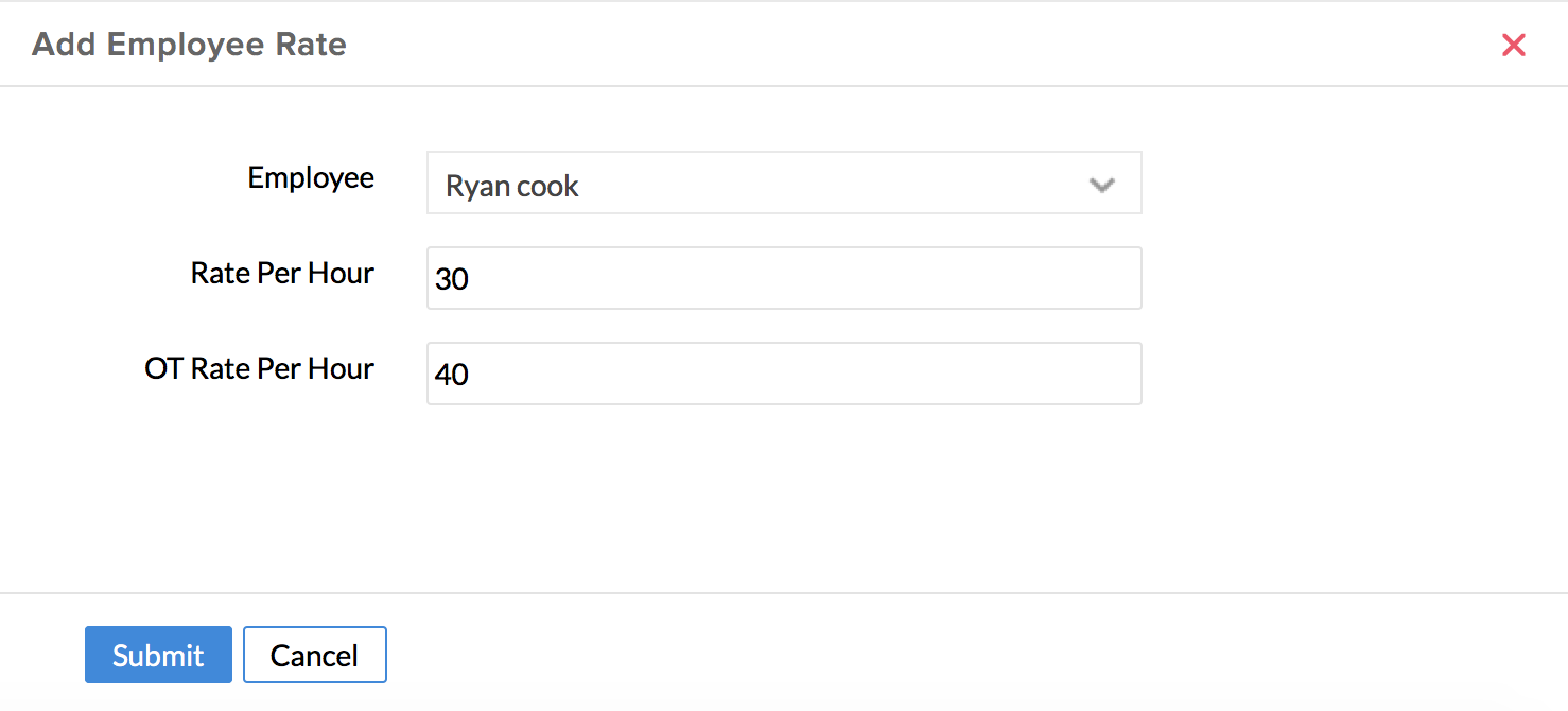- Select the employee from the dropdown and enter the Rate per Hour