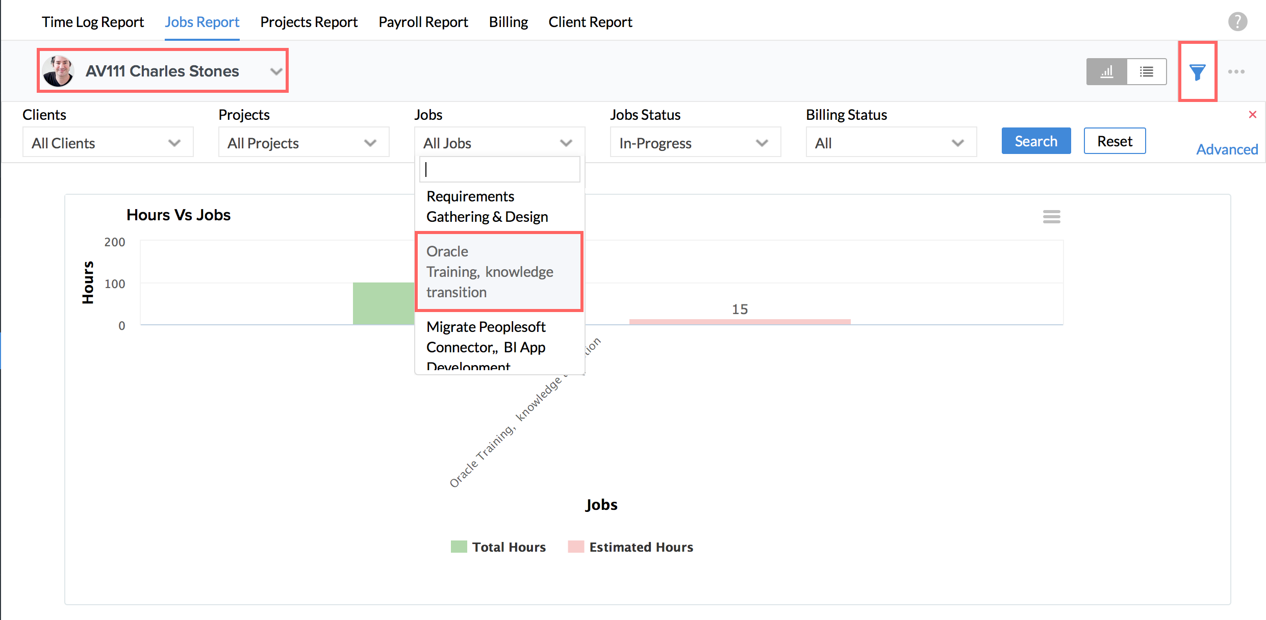 - Click on the Filter, go to the Jobs drop down and select the Job for which you need the report