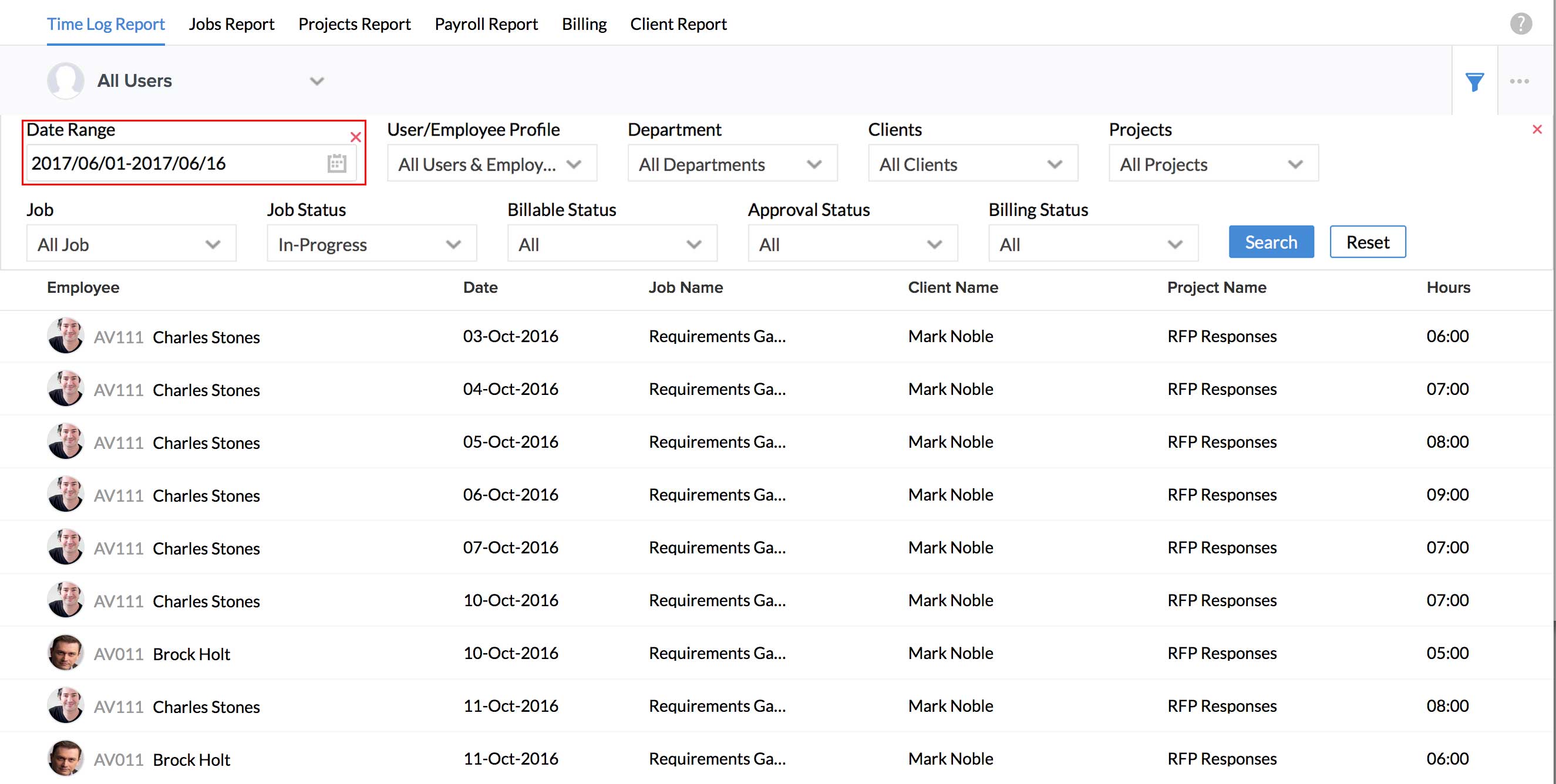 - From your home page, go to Time Tracker > Reports > Job Report